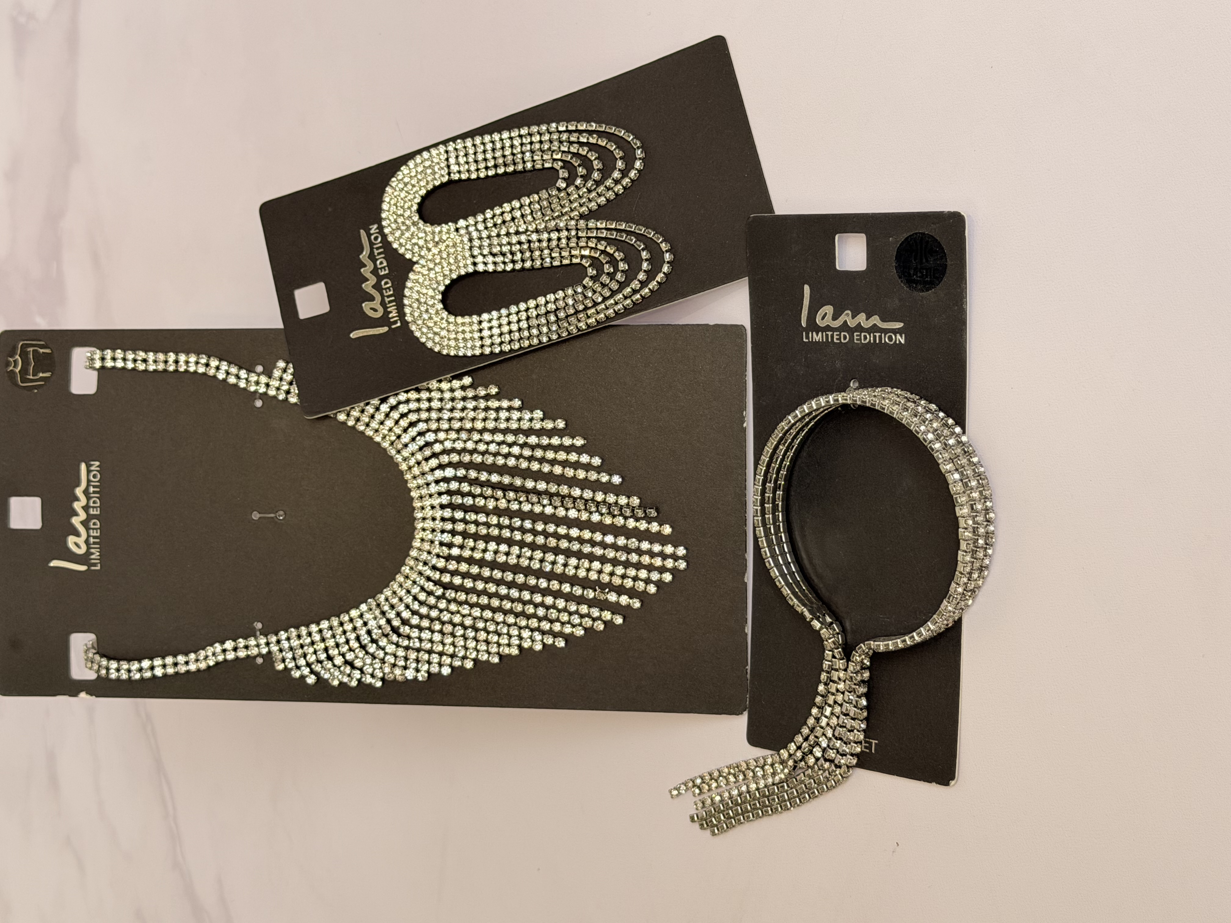 نیمست دخترانه تمام نگین | ست کامل گردنبند دستبند گوشواره درخشان و مجلسی مناسب هدیه