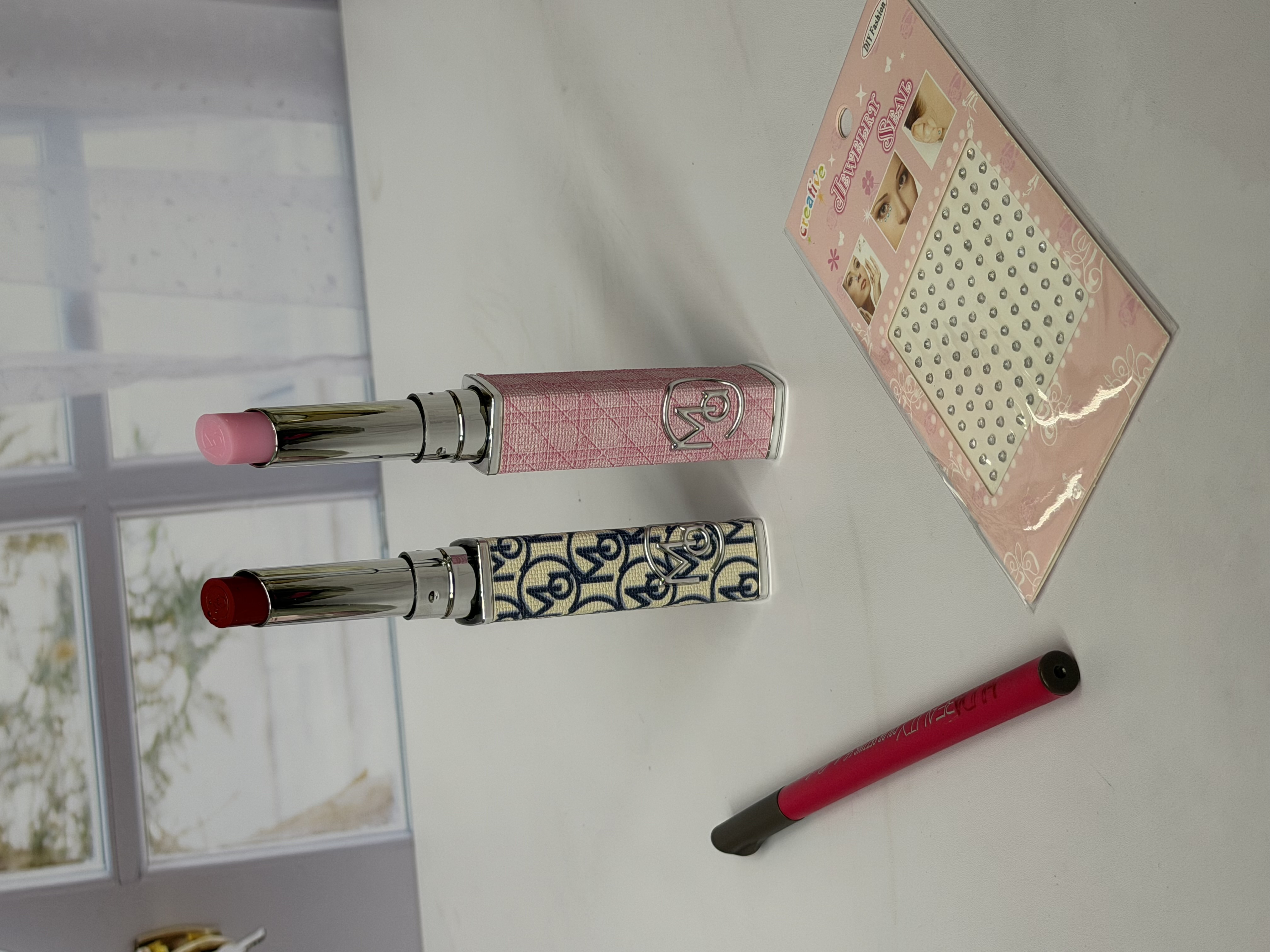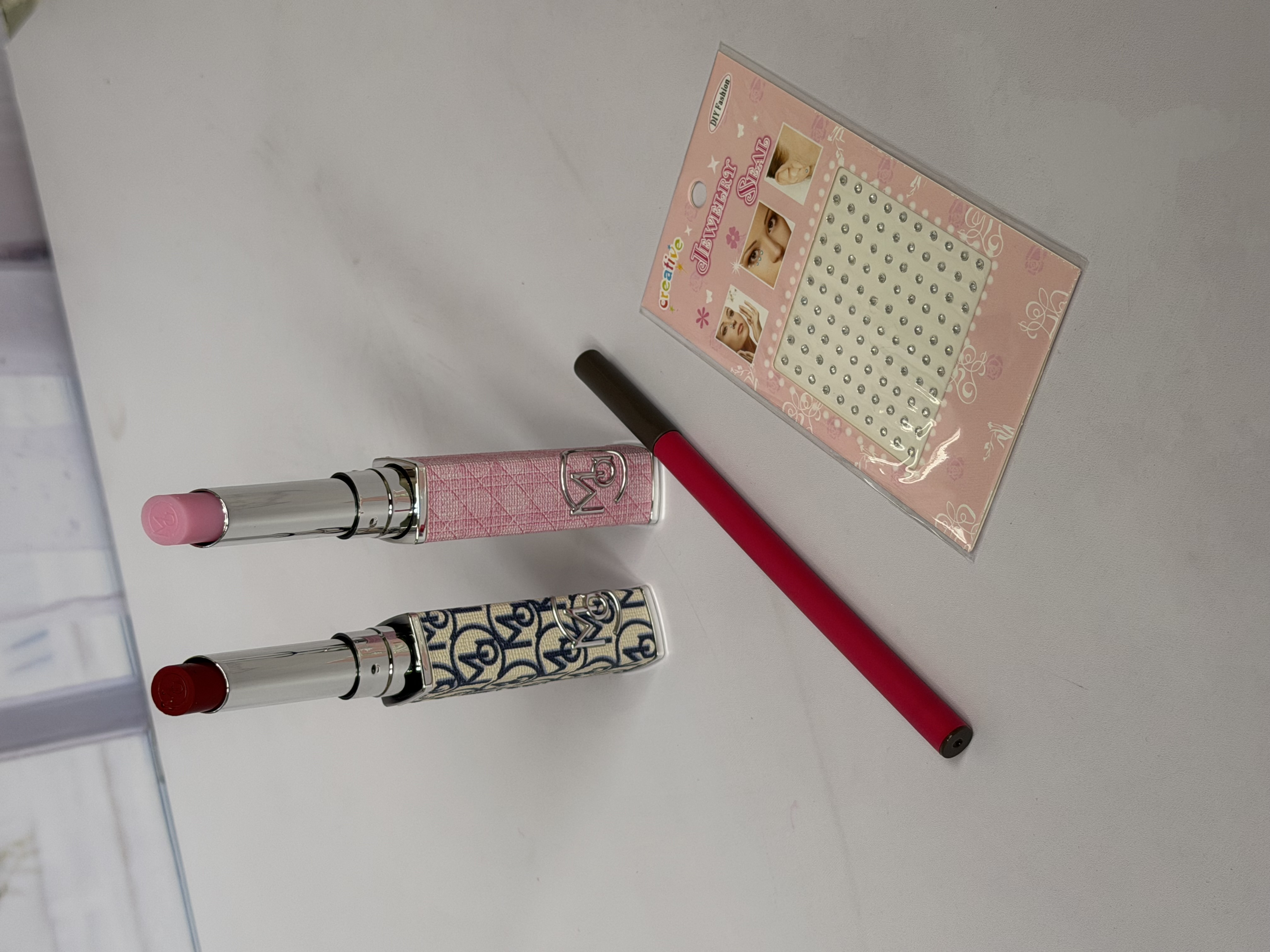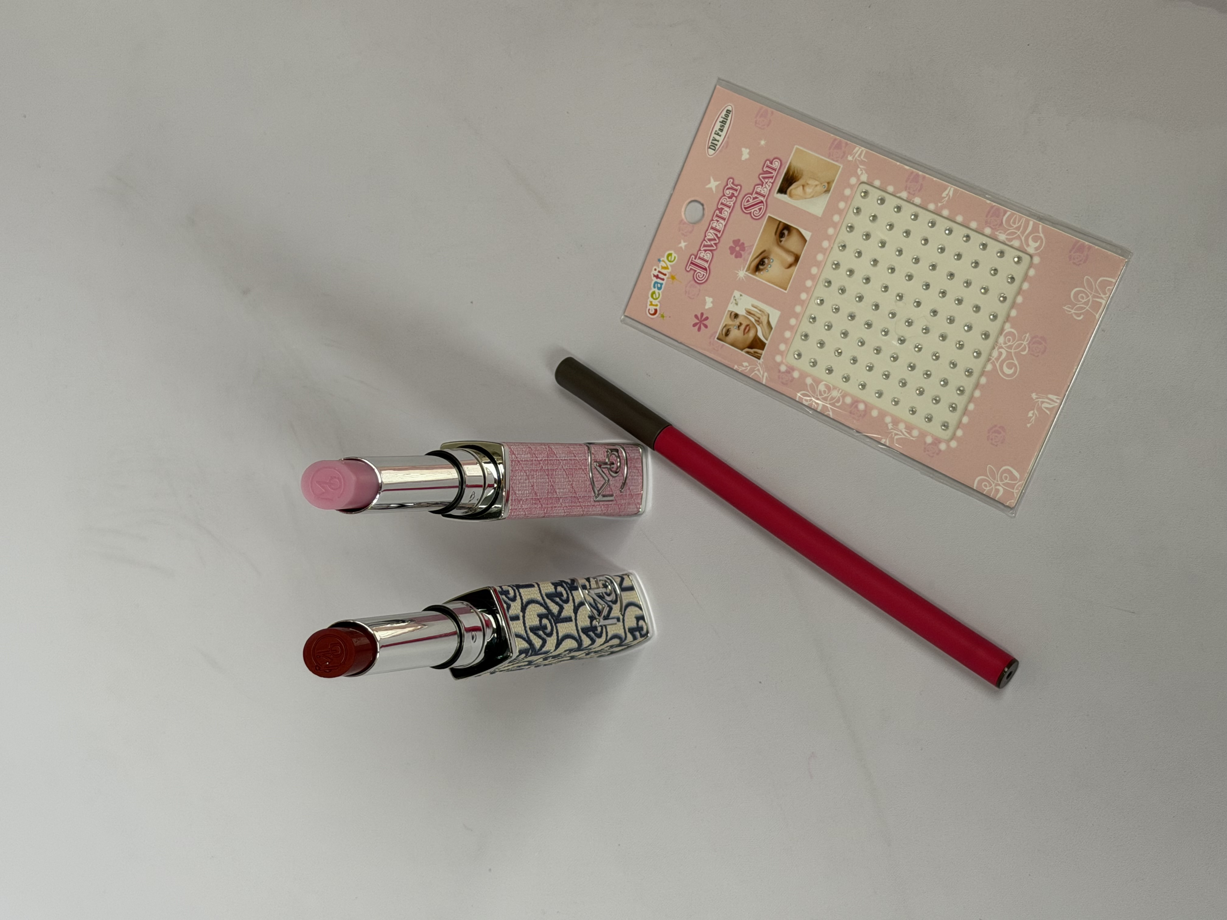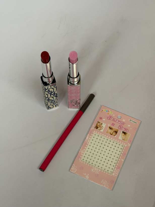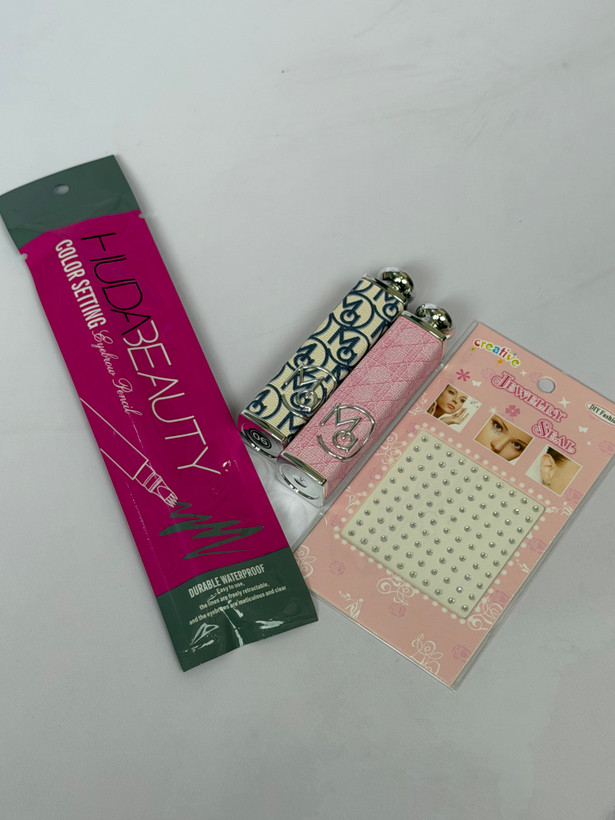 پک آرایشی لوکس شامل بالم لب دیور، کانتور ابرو، نگین چسبی صورت، رژ لب دیور و تیغ ابرو | خوشبو، اقتصادی | ارسال فوری از برفگالری