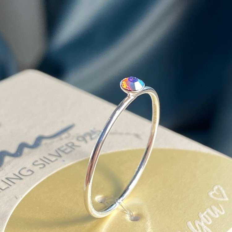 خرید انگشتر نقره زنانه تک نگین هفت رنگ رینگ عیار 925 وارداتی اصل رنگ ثابت ضد حساسیت