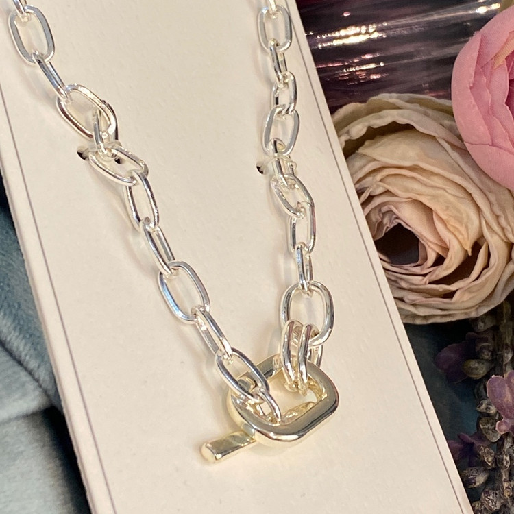 گردنبند نقره ای زنانه قفل تی برند تاش آلمان مناسب هدیه تولد