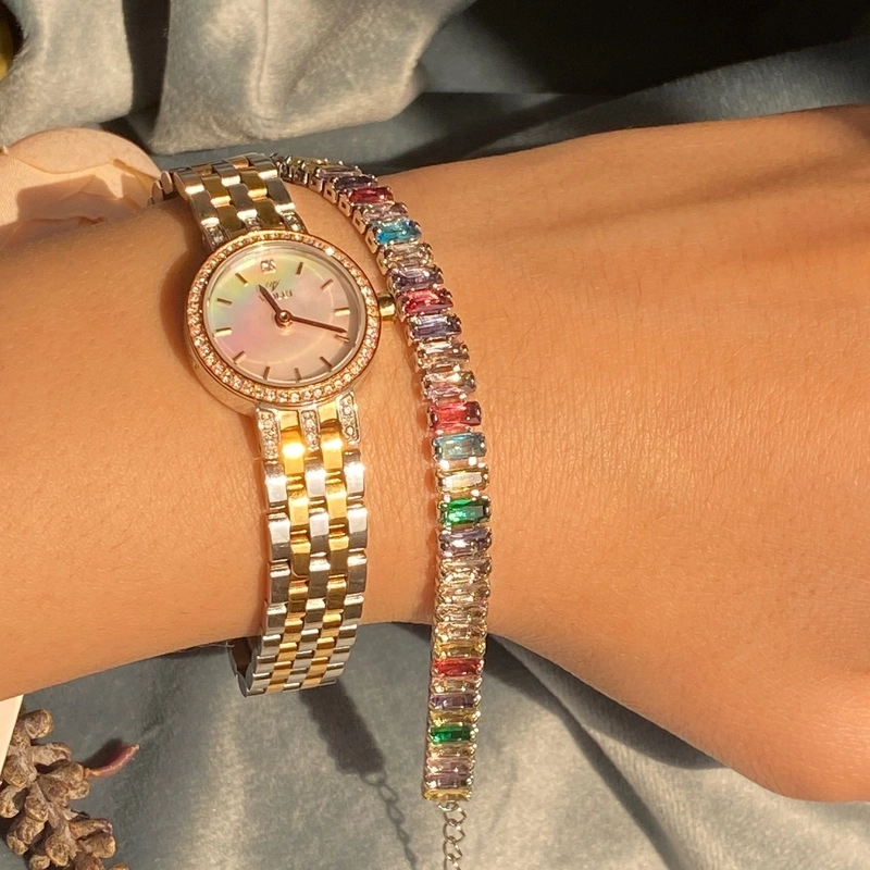 دستبند تنیسی مولتی کالر دستبند استیل رنگ ثابت دستبند دخترانه دستبند مجلسی بینظیر برای کادو تولد