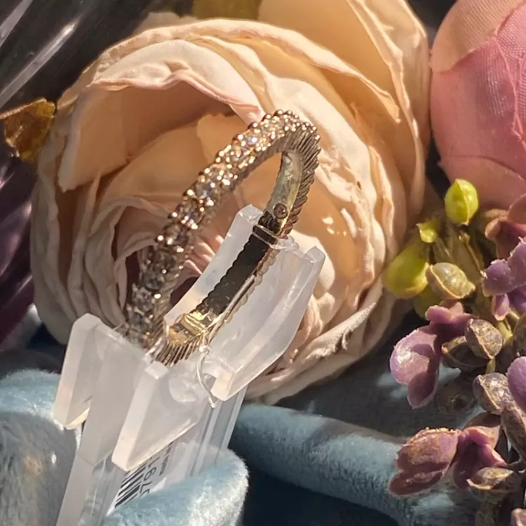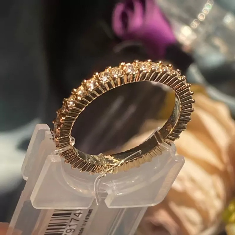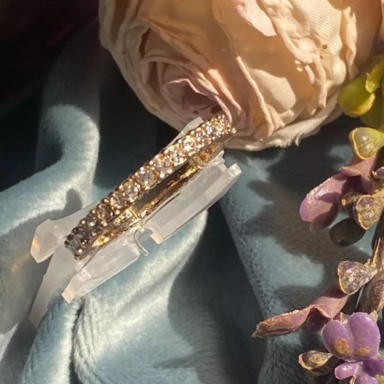 انگشتر طلایی نگیندار با طراحی فوقالعاده ظریف و نگینهای درخشان، انتخابی بینظیر برای خانمها و دخترانی است که به دنبال استایلی شیک و خاص هستند.