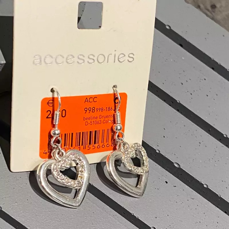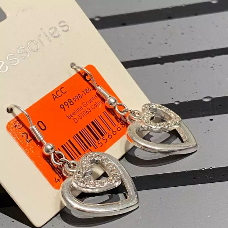 گوشواره ی دو قلب نگینی ضد حساسیت وارداتی تخفیف به دلیل تک بودن کادو تولد