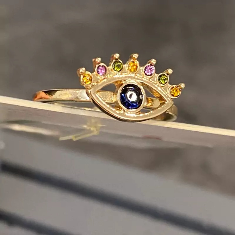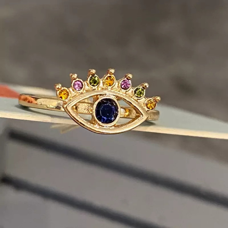 خرید انگشتر چشم نگین دار مولتی کالر دخترانه زنانه | زیبا، مینیمال و جذاب | ارسال فوری و قیمت مناسب