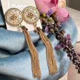 گوشواره میخی ریسه ای با نگین نباتی ترند و زیبا در گوش گوشواره مجلسی