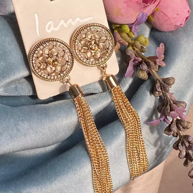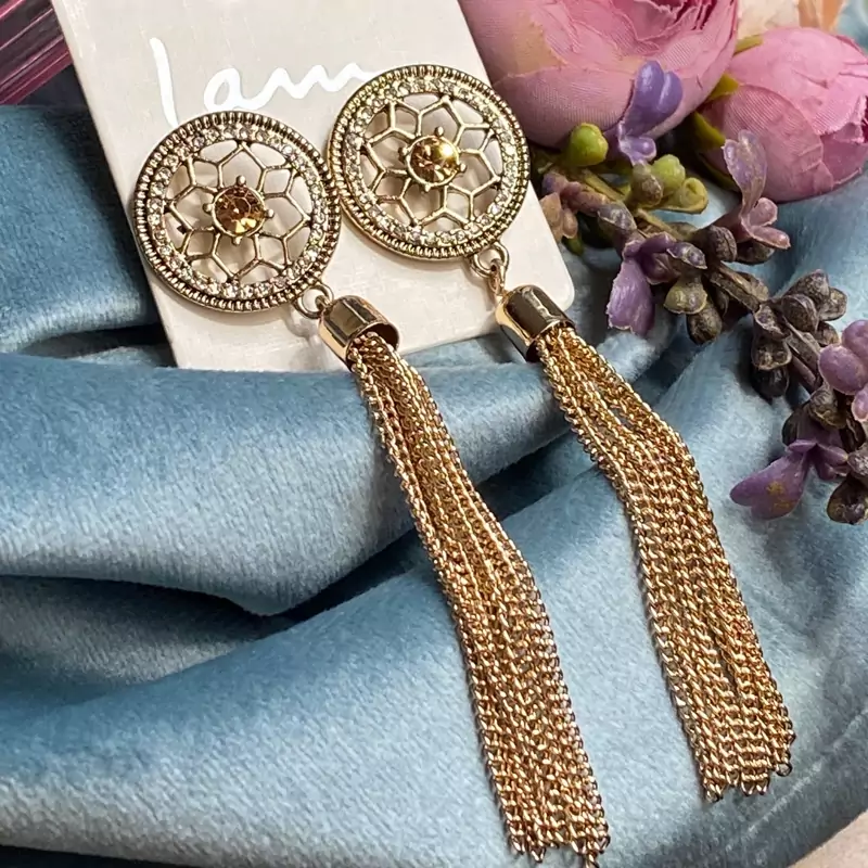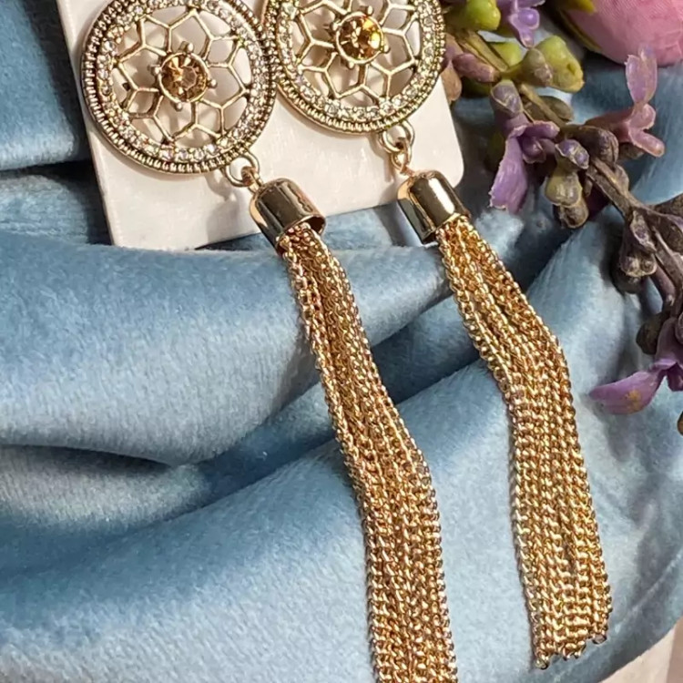 گوشواره ریسه ای با نگین نباتی گوشواره مجلسی دخترانه بینظیر برای کادو تولد