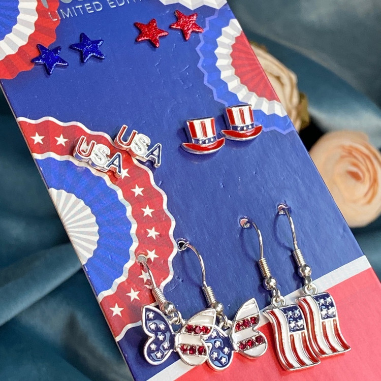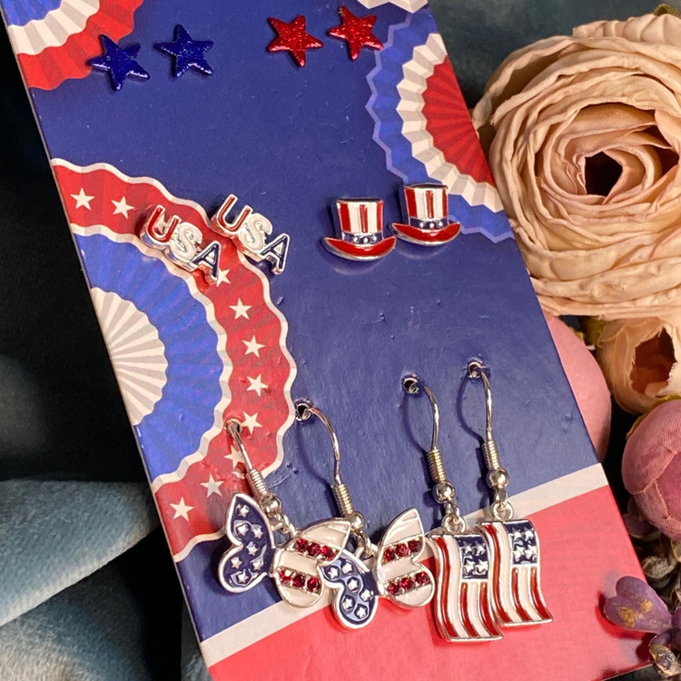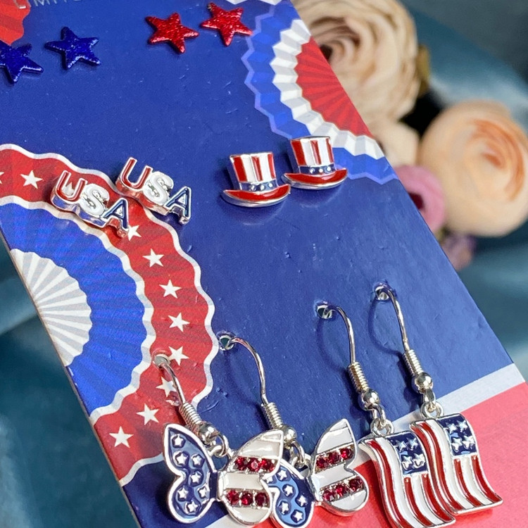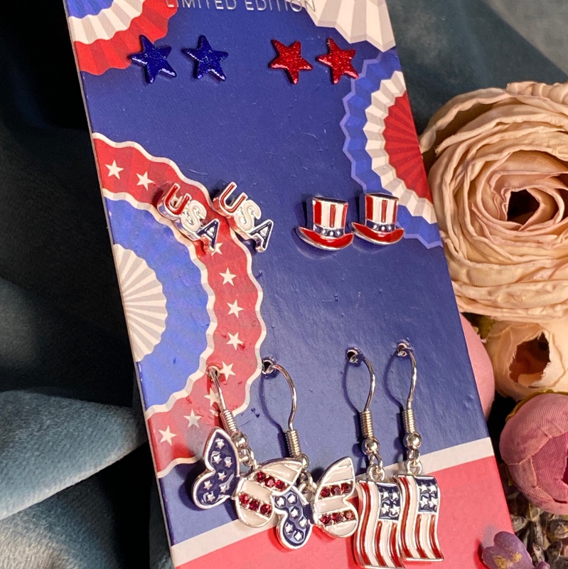 پک گوشواره مدل پرچم آمریکا اکسسوری دخترانه جذاب برای کادو تولد