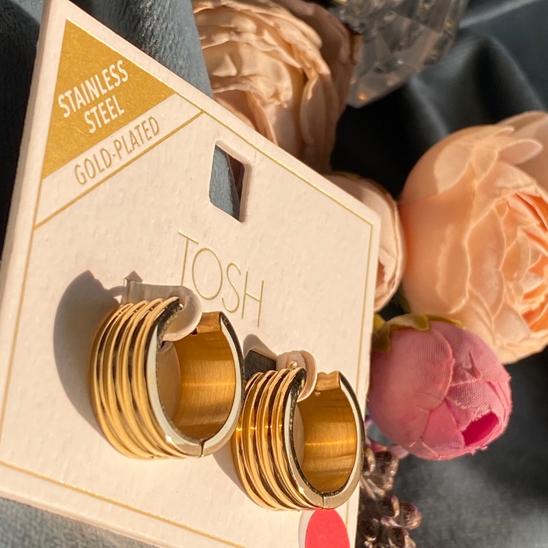 گوشواره استیل آیکاری شده طلایی رنگ ثابت کادو تولد