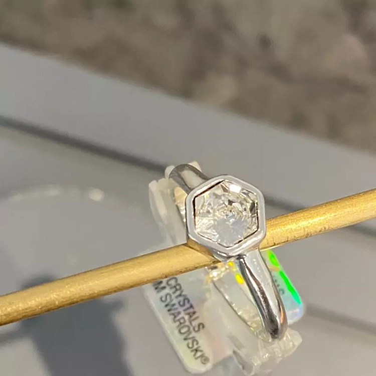 انگشتر هشت ضلعی با کریستال سواروسکی وارداتی انگشتر شیک اکسسوری زنانه کادو تولد