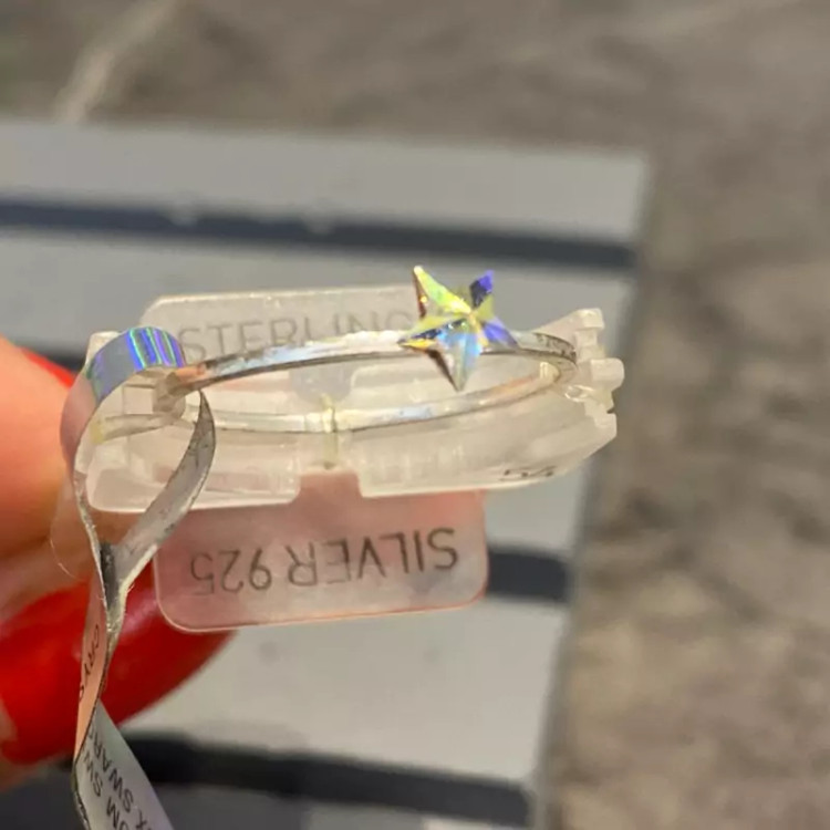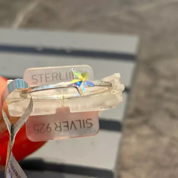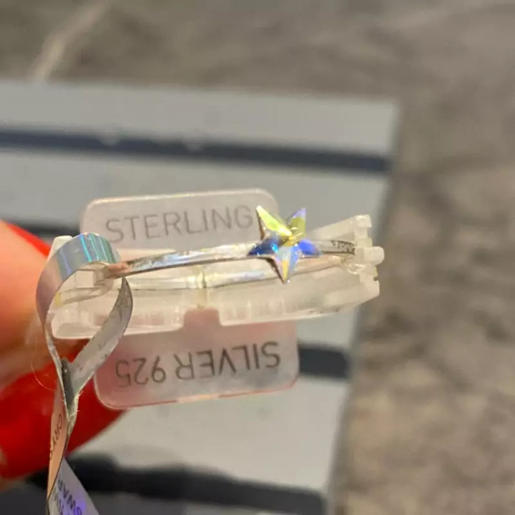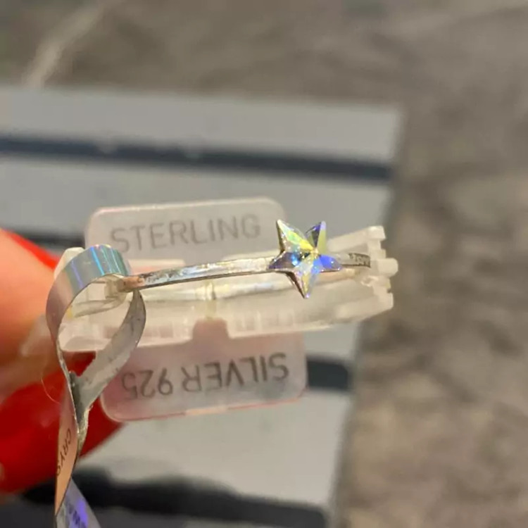 انگشتر نقره سواروسکی وارداتی بسیار زیبا و درخشان در دست با طرح ستاره