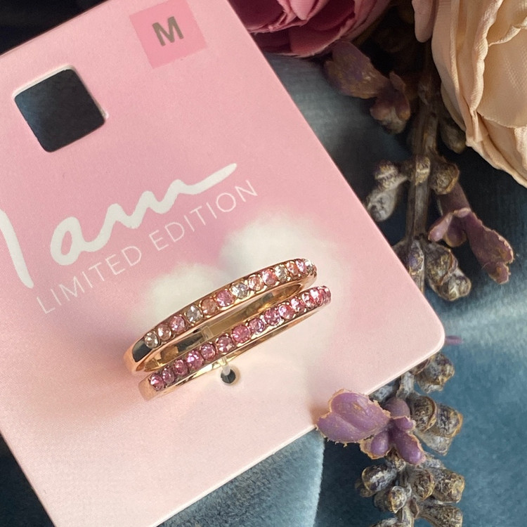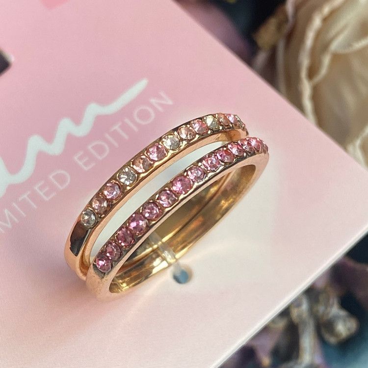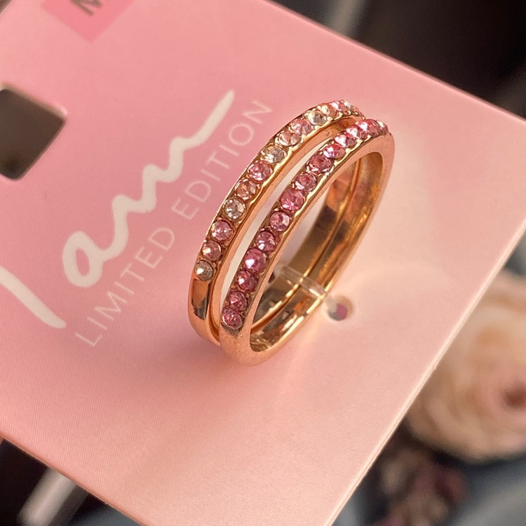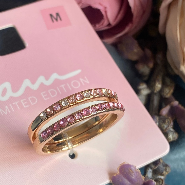 پک دوتایی انگشتر رینگ تمام نگین صورتی بسیار ظریف و زیبا اکسسوری دخترانه برای کادو تولد