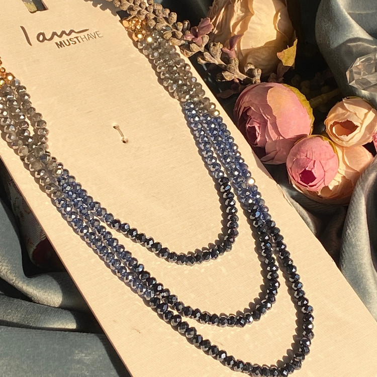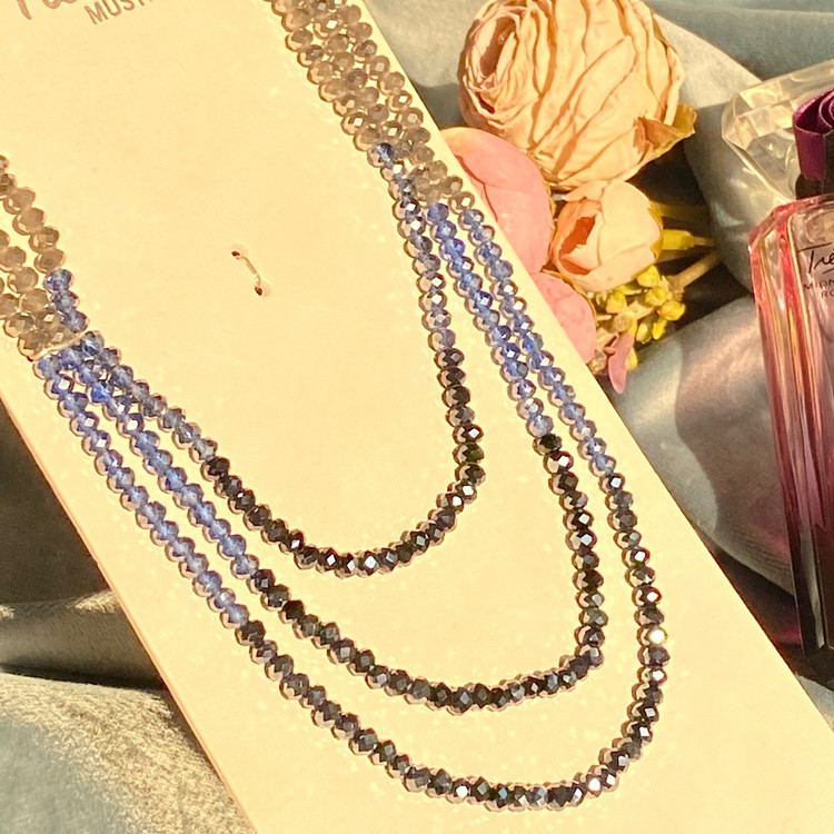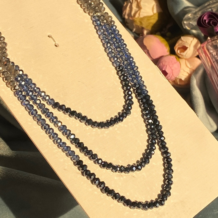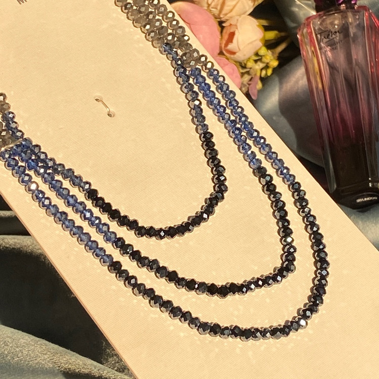 خرید گردنبند کریستالی سه لاین طلایی دخترانه زنانه ظریف شیک مجلسی جدید