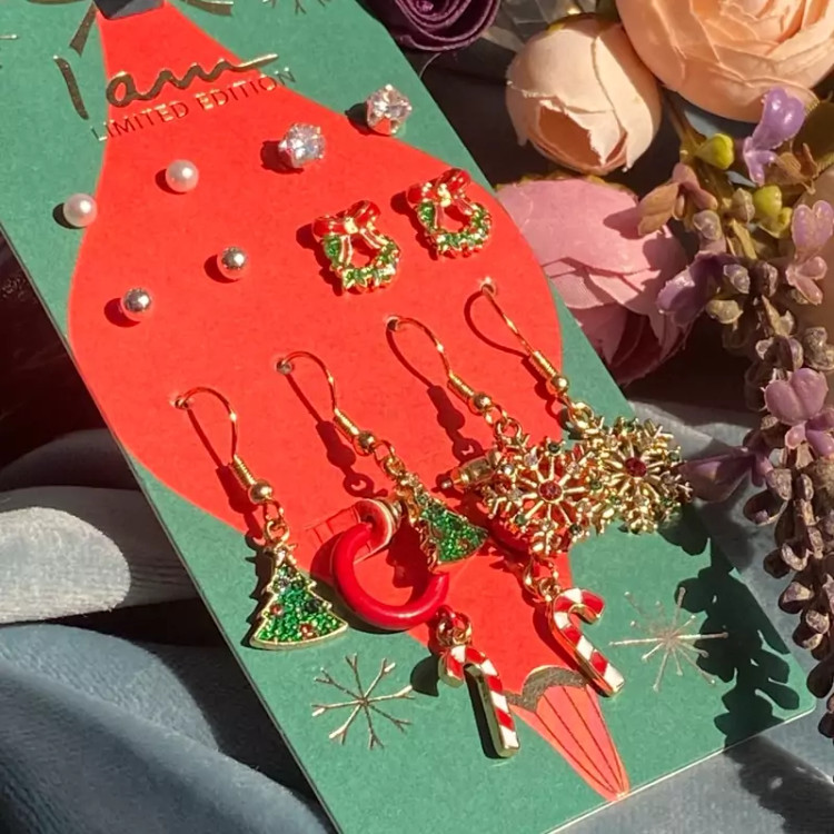 پک گوشواره میخی دخترانه پک 7تایی گوشواره کریسمسی اکسسوری دخترانه فوق العاده برای کادو تولد
