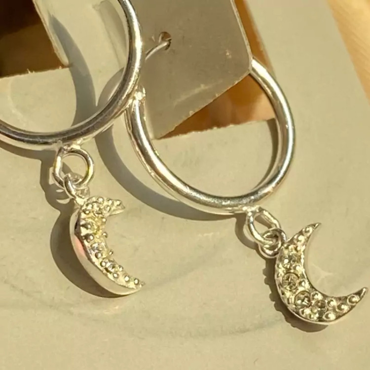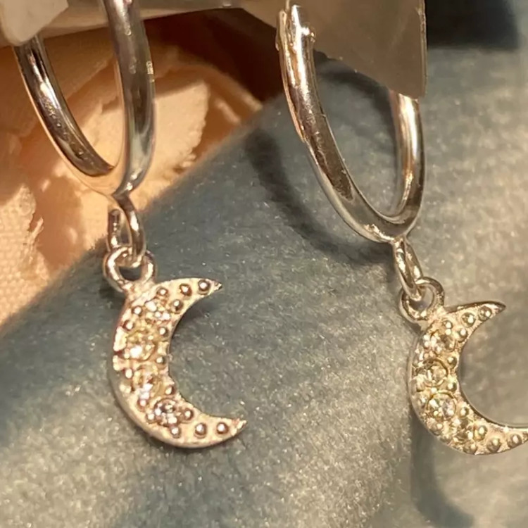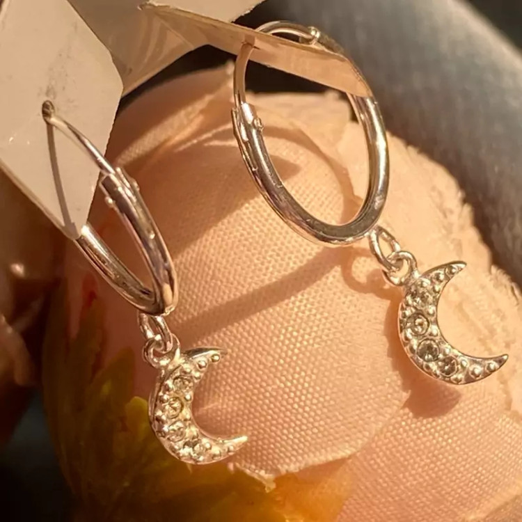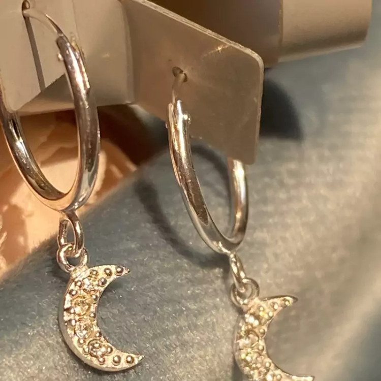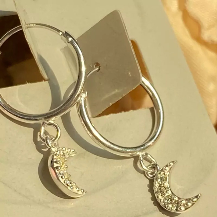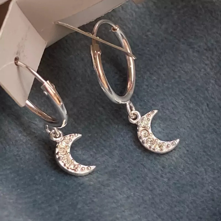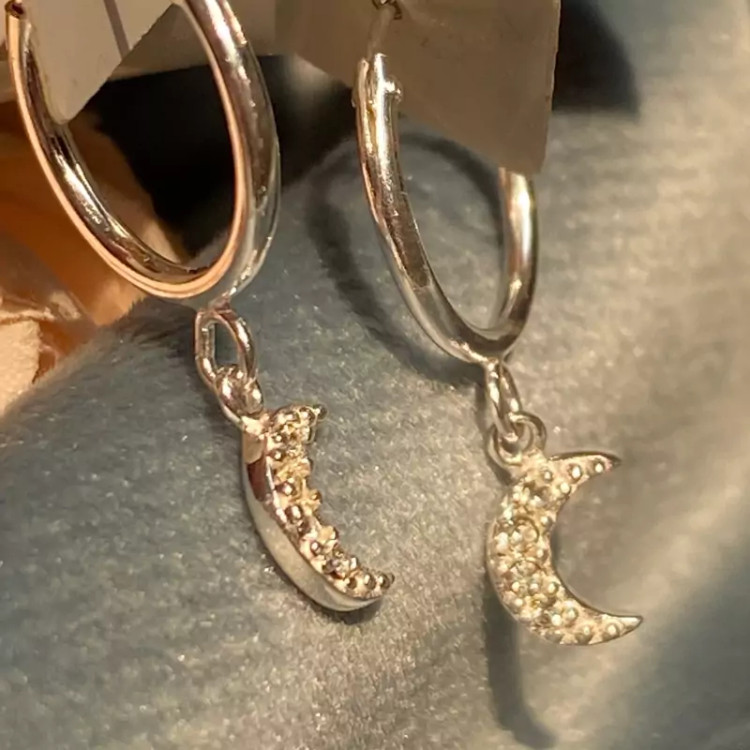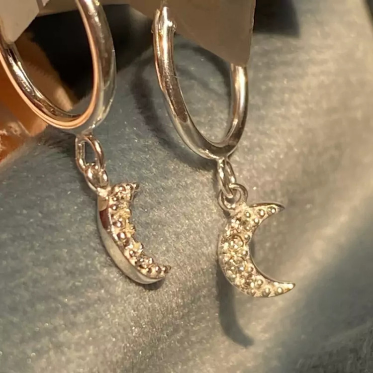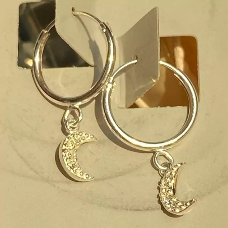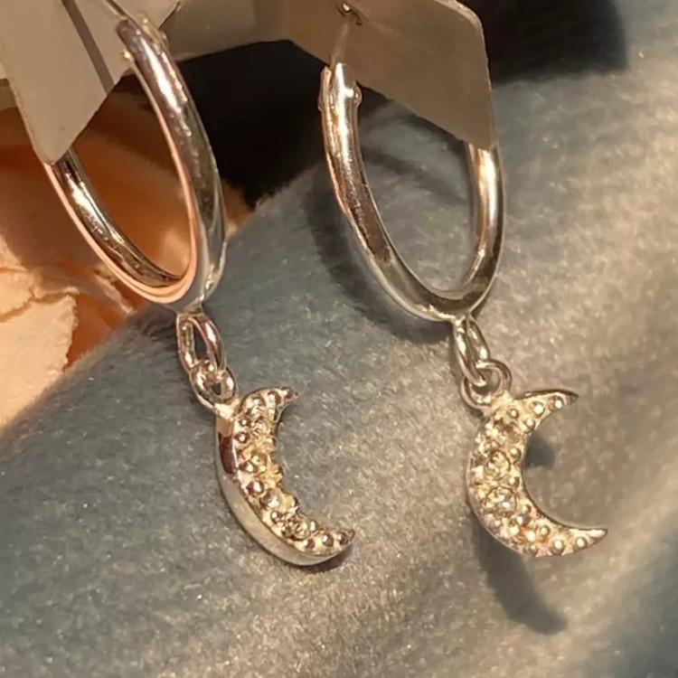 گوشواره نقره ماه گوشواره جدید حلقه ای نقره با آویز ماه نگین زیرکنیا