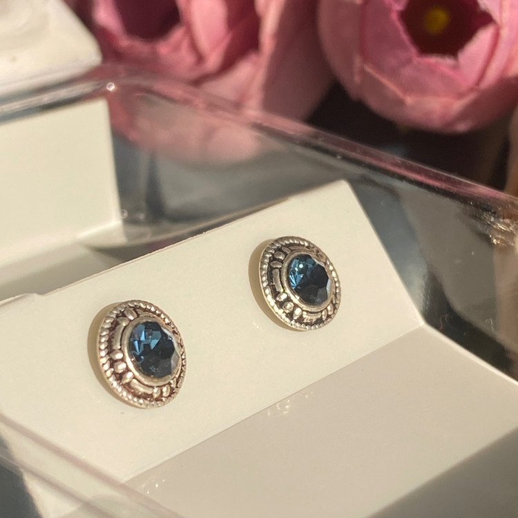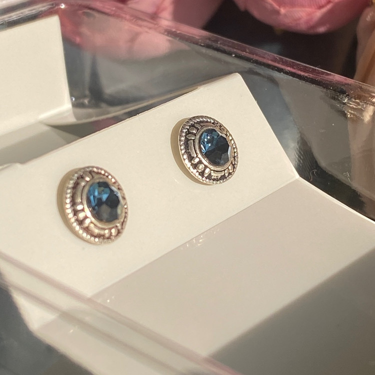 گوشواره نقره بینهایت زیبا با عیار 925 با کریستال آبی فوق العاده شیک و خاص