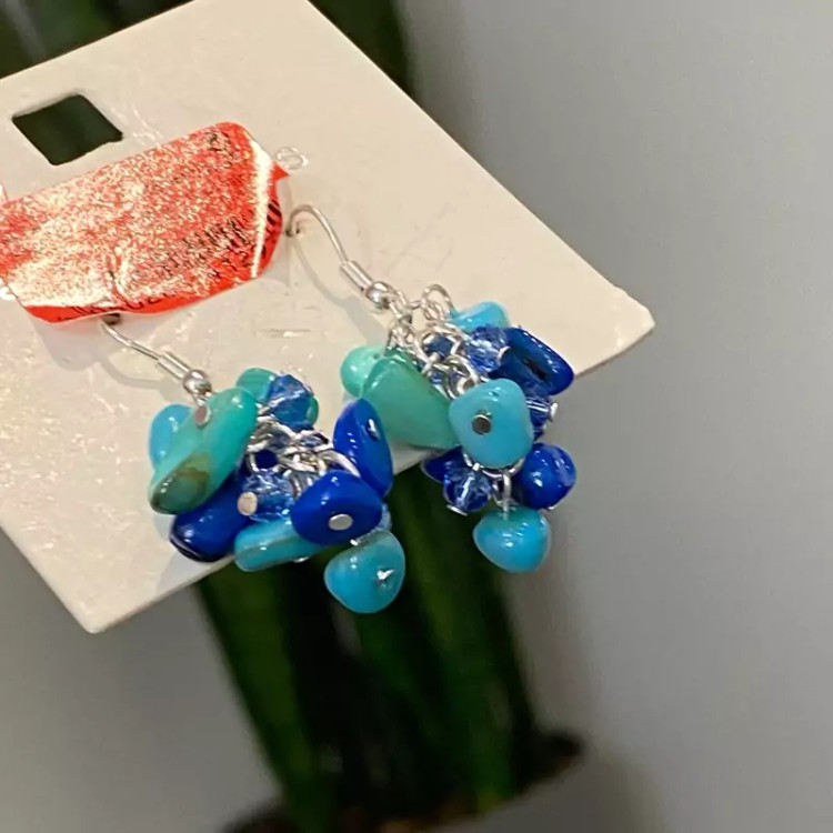 گوشواره شیک زنانه آویز فیروزه ای وارداتی اکسسوری مناسب کادو تولد