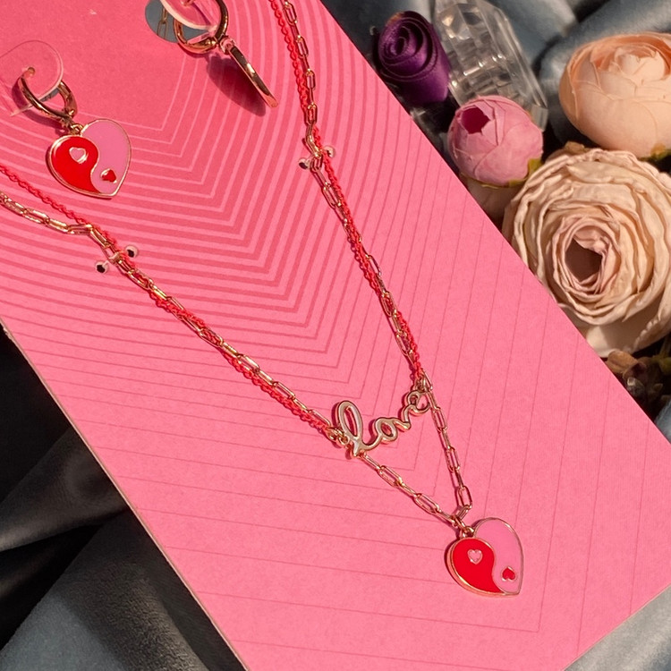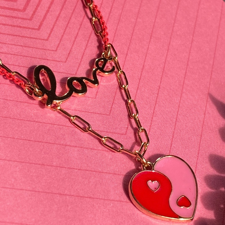 نیمست قلب و لاو با گردنبند دو لاین نیمست زیبا اکسسوری دخترانه برای کادو تولد و کادو ولنتاین