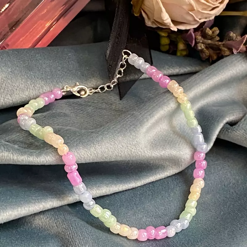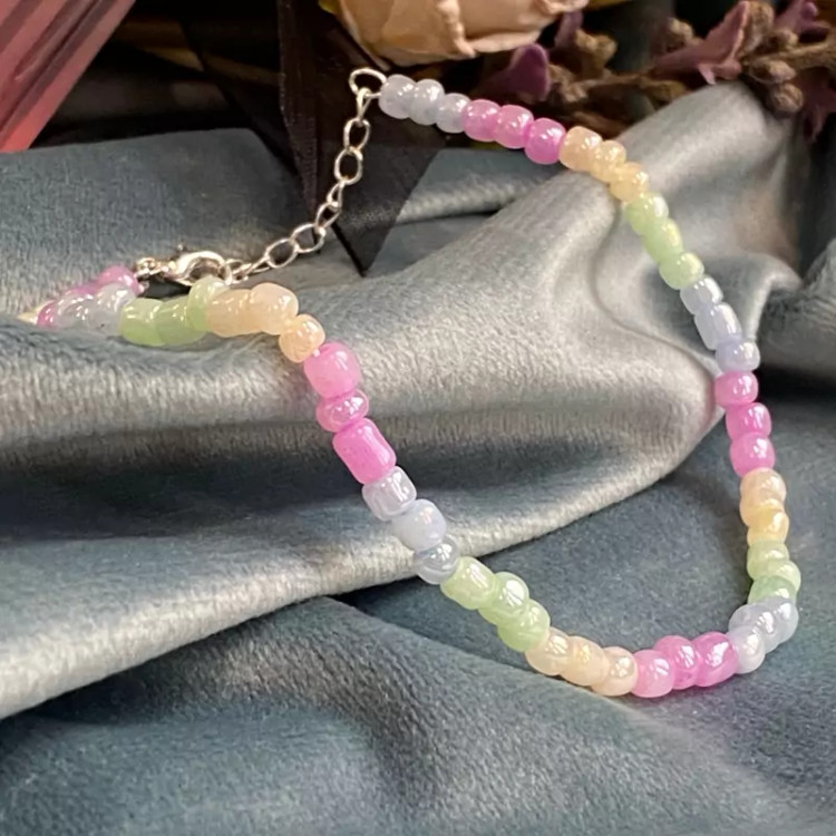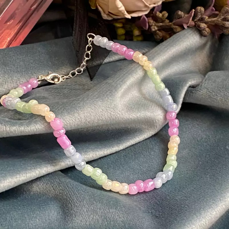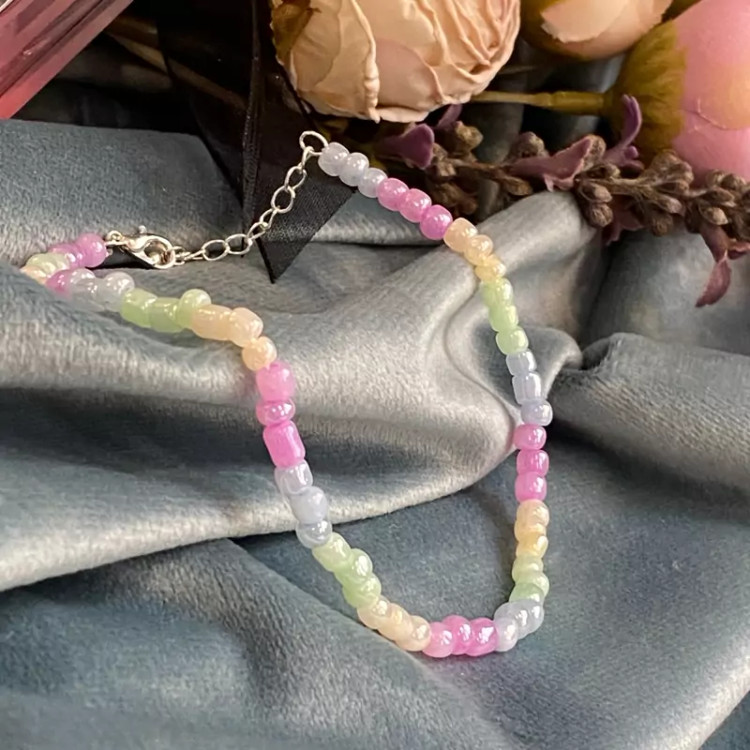 پابند مهره ای با رنگ پاستیلی بینظیر و خاص در پا