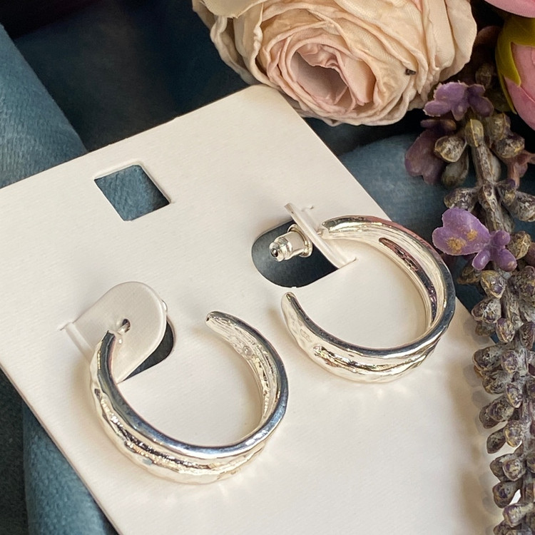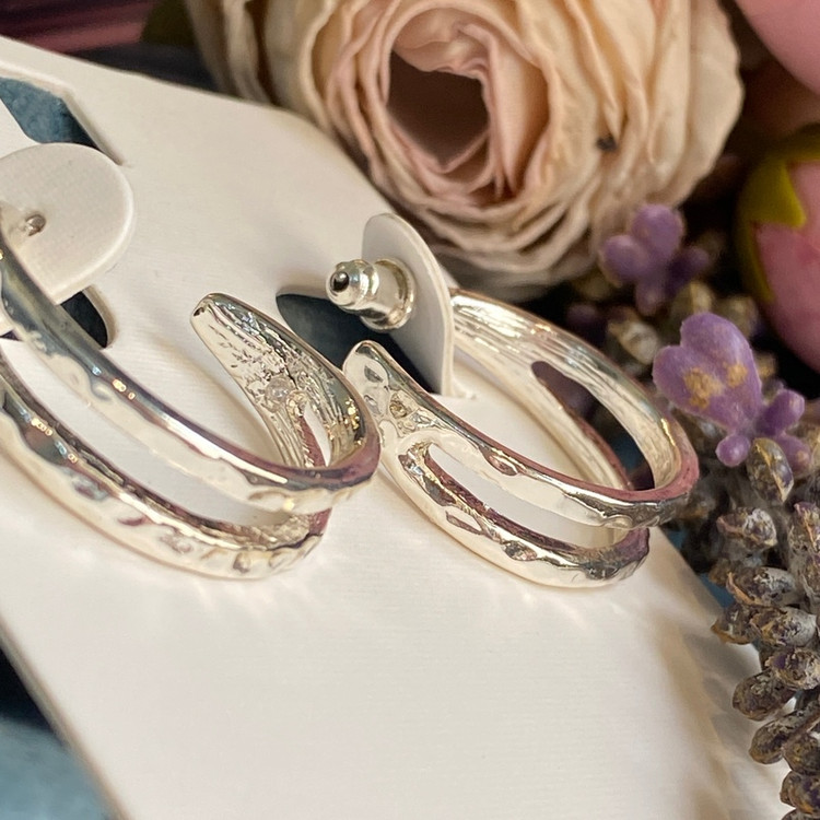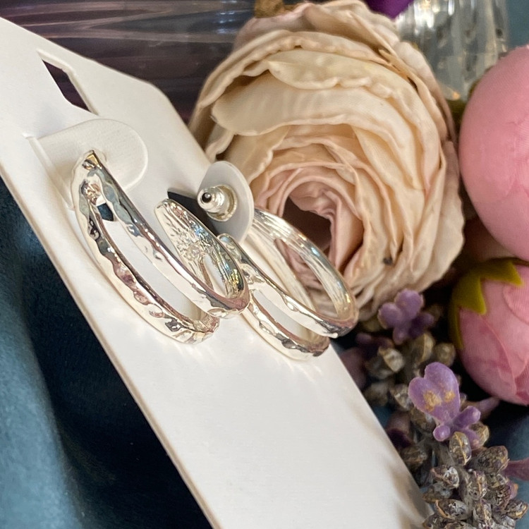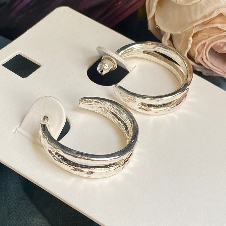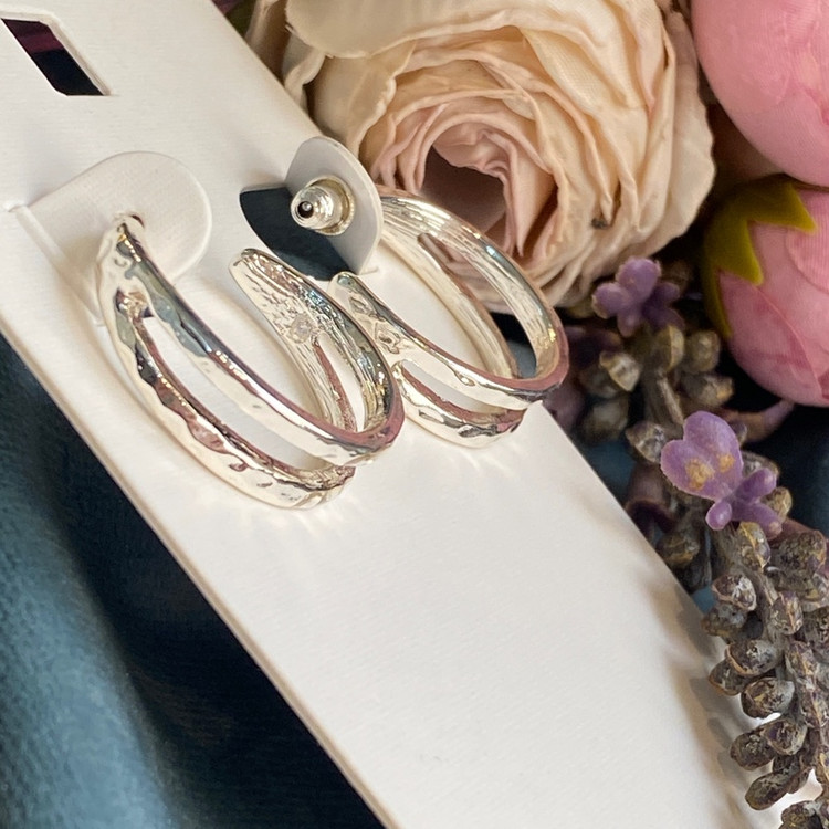 گوشواره میخی نقره ای دو لاین