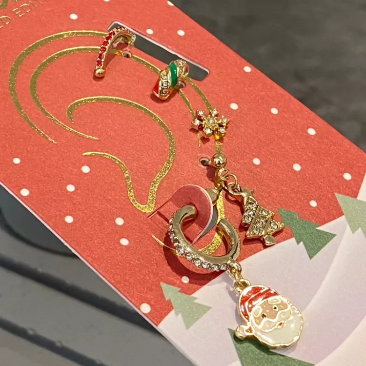 گوشواره و ایرکاف دخترانه پک گوشواره و ایرکاف کریسمسی اکسسوری زیبا برای کادو