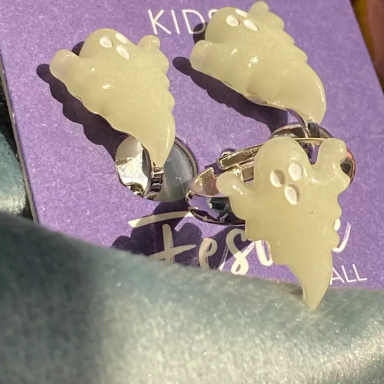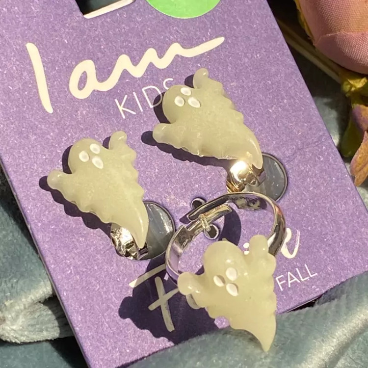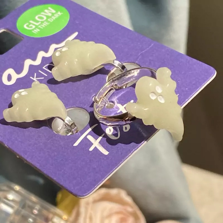 ست گوشواره و انگشتر روح شبرنگ هالووینی گوشواره کلیپسی بدون نیاز به سوراخ انگشتر فری سایز