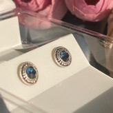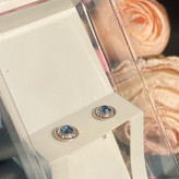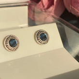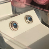 گوشواره نقره میخی زنانه مدل سیاه قلم نگین آبی عیار 925 جدید