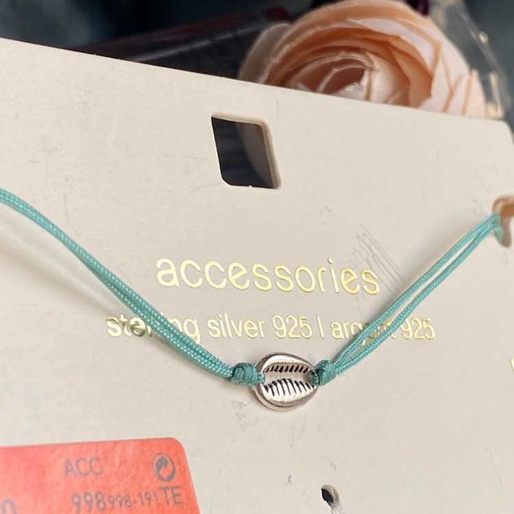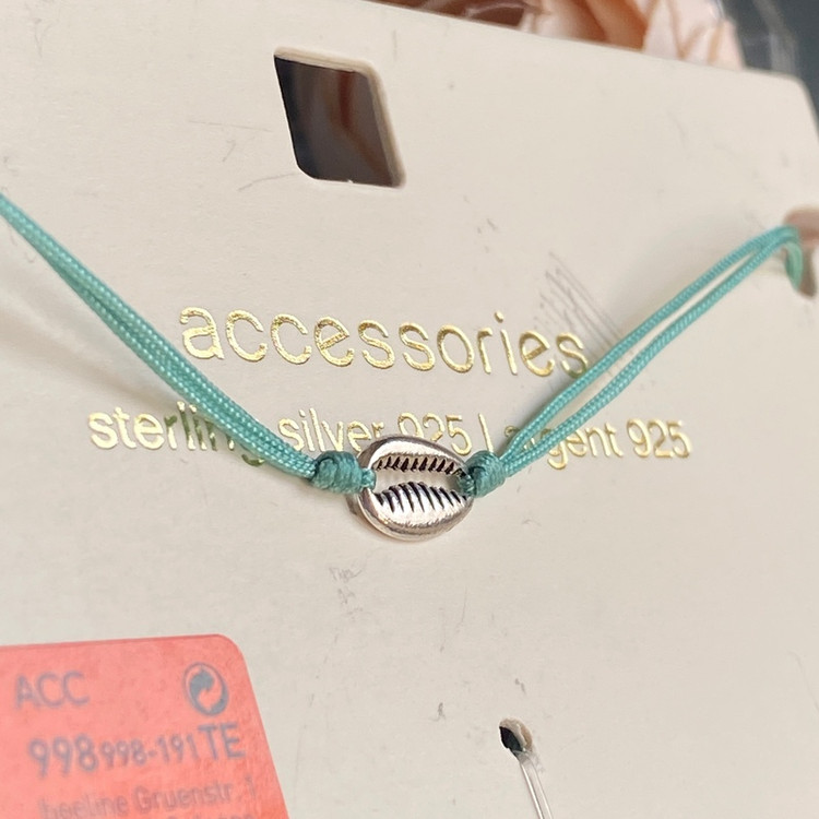 پابند نقره با بند سبز عیار 925 بینظیر در پا