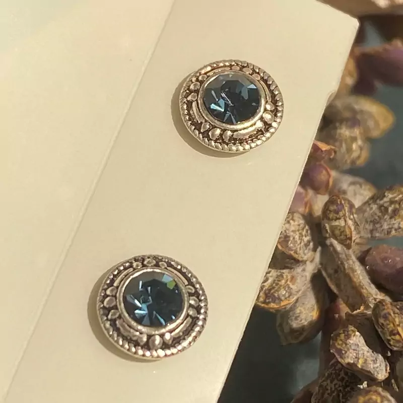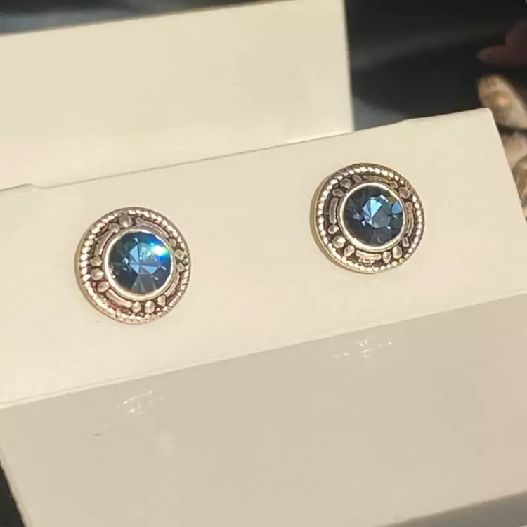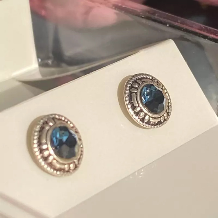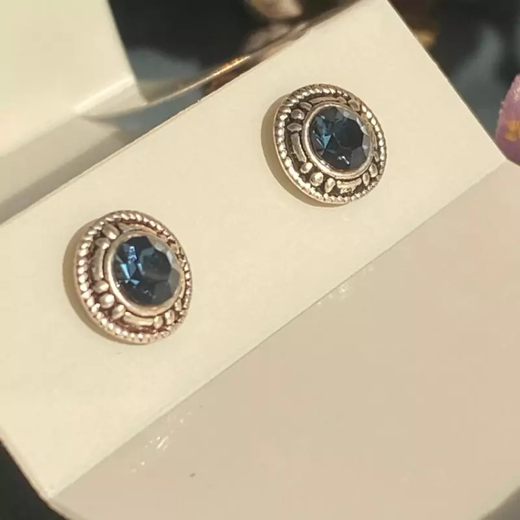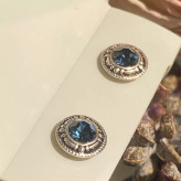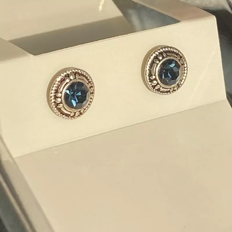 گوشواره نقره میخی سیاه قلم نگین آبی عیار 925 مینیمال زنانه وارداتی