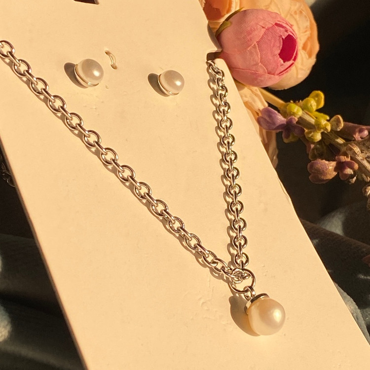 خرید نیمست دخترانه زنانه با پلاک مروارید و زنجیر نقره ای مجلسی جدید شیک ظریف آنلاین قیمت مناسب