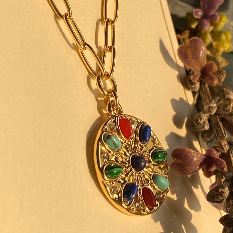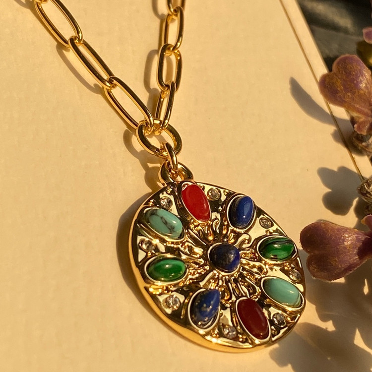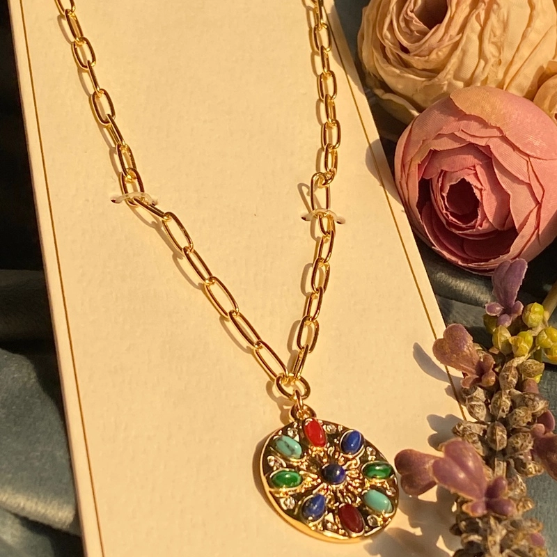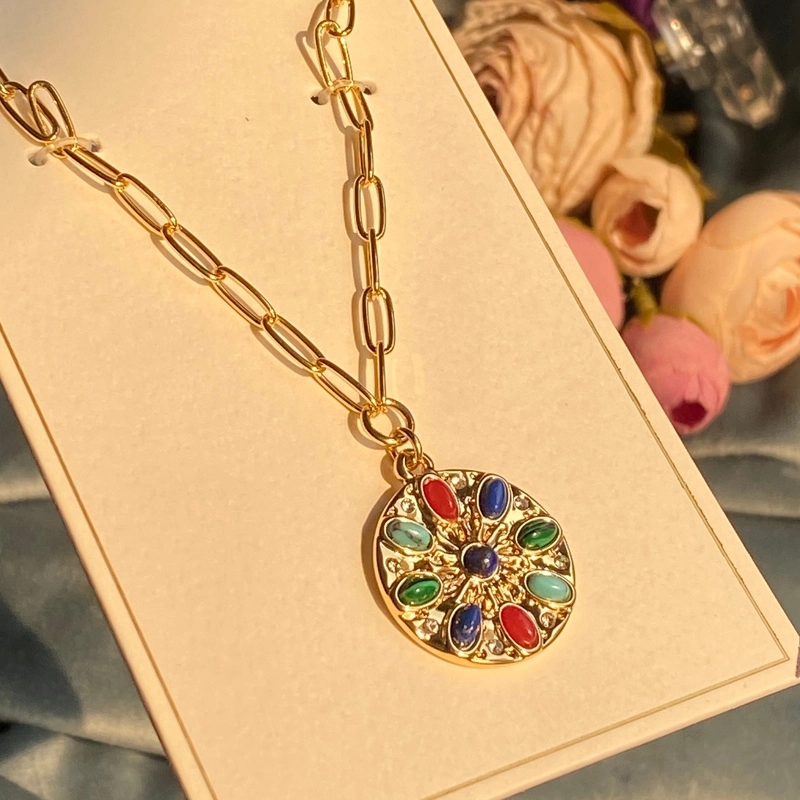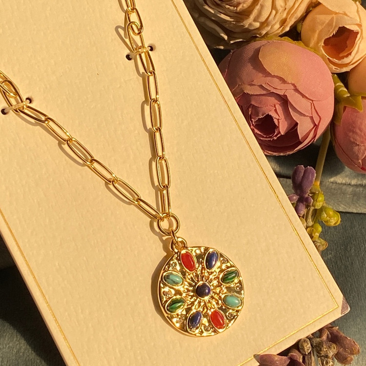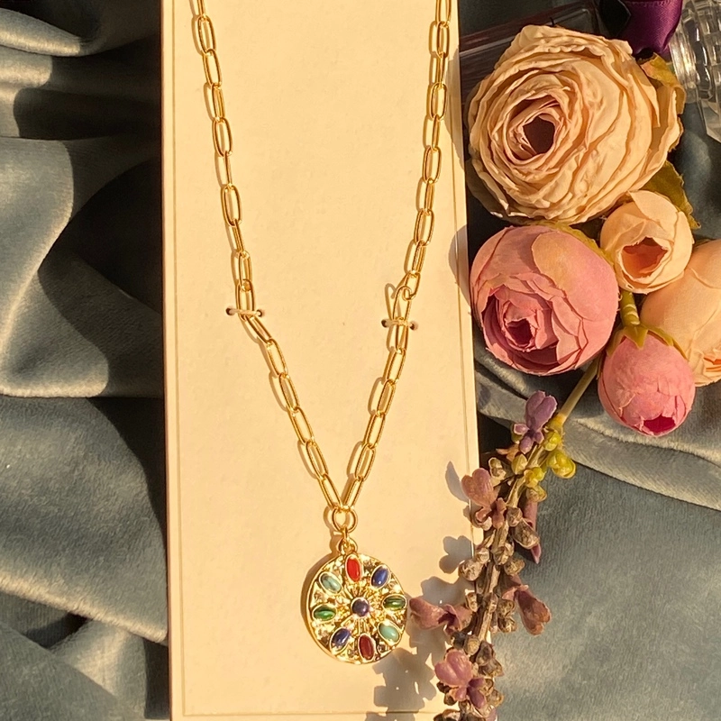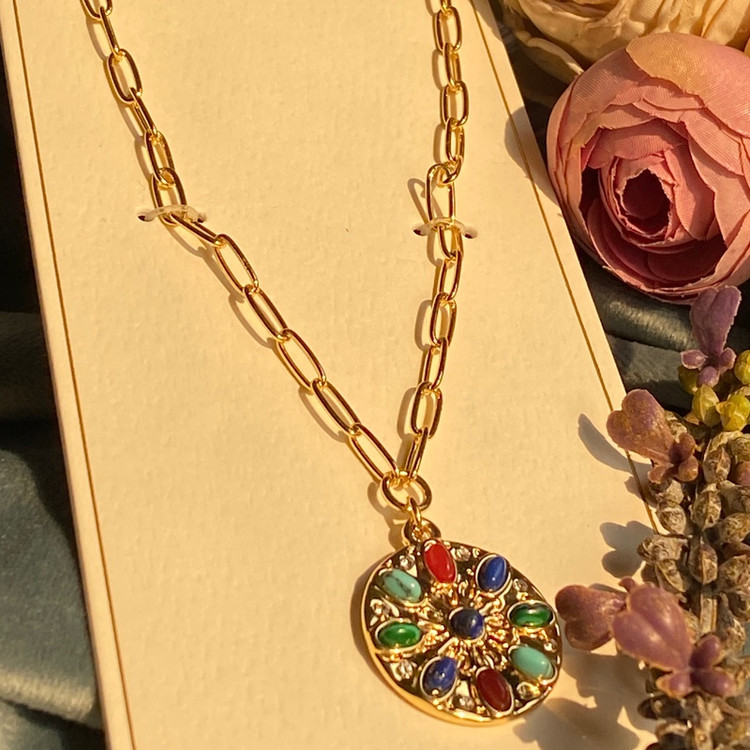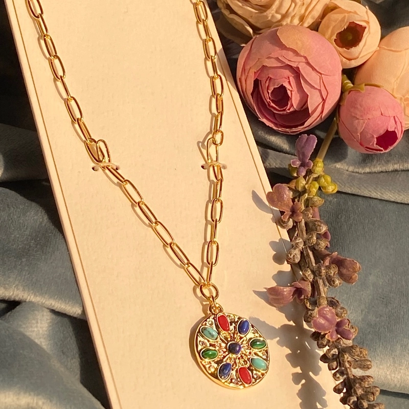 گردنبند زنانه دخترانه مولتی کالر مشابه طلا ترند وارداتی سبک با پلاک رنگی خاص جدید
