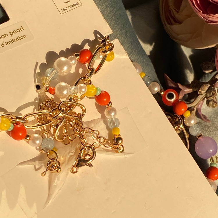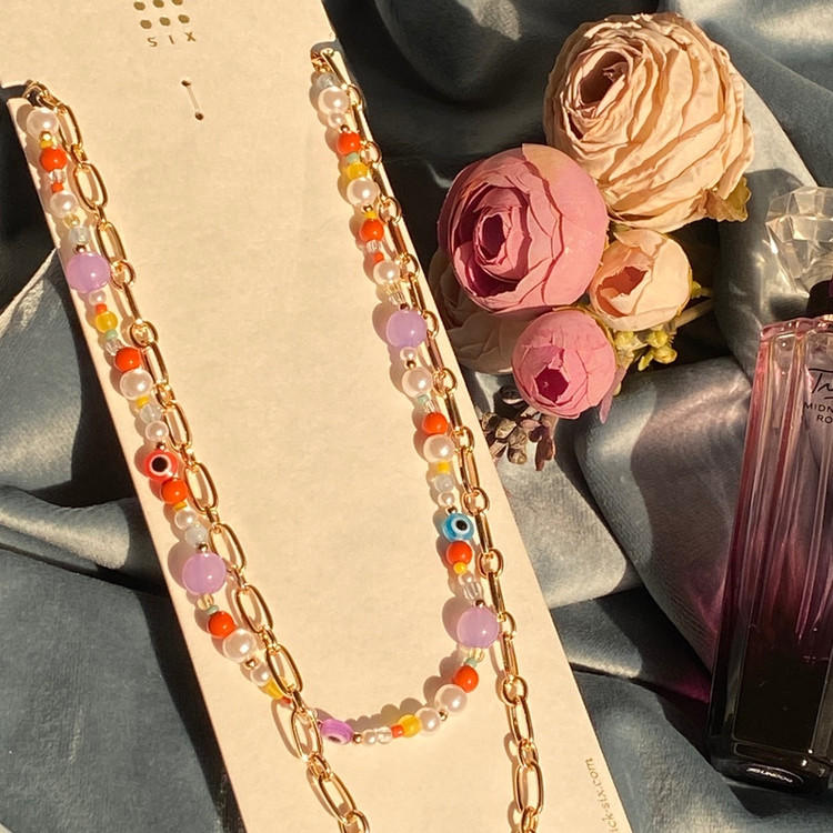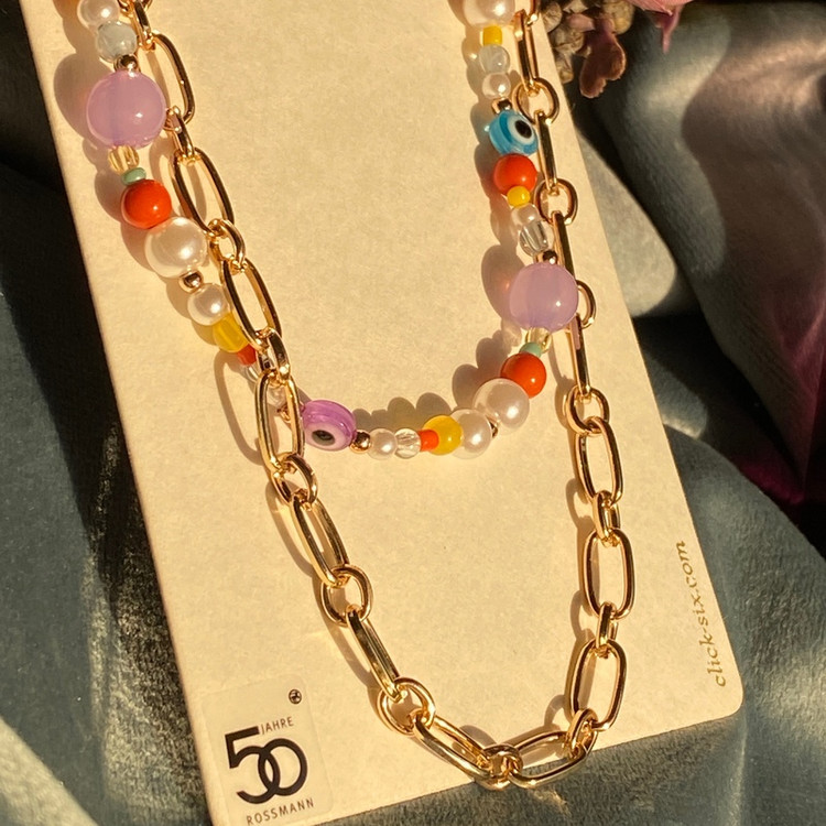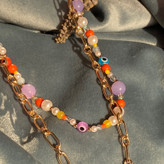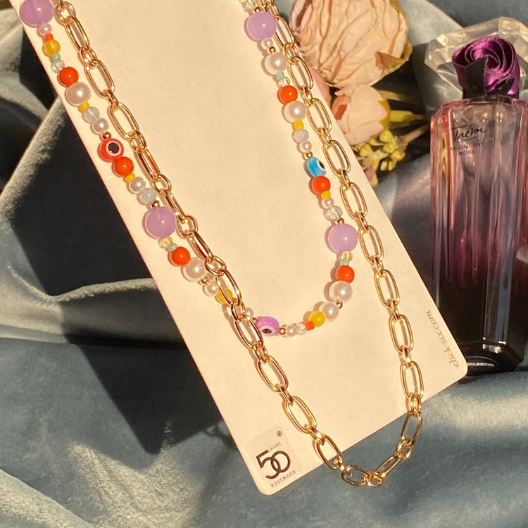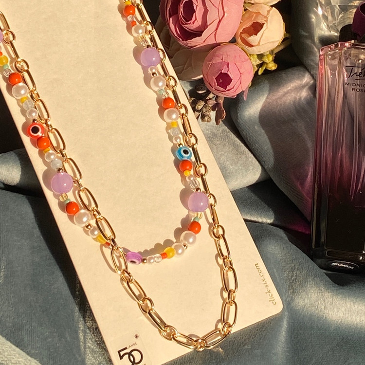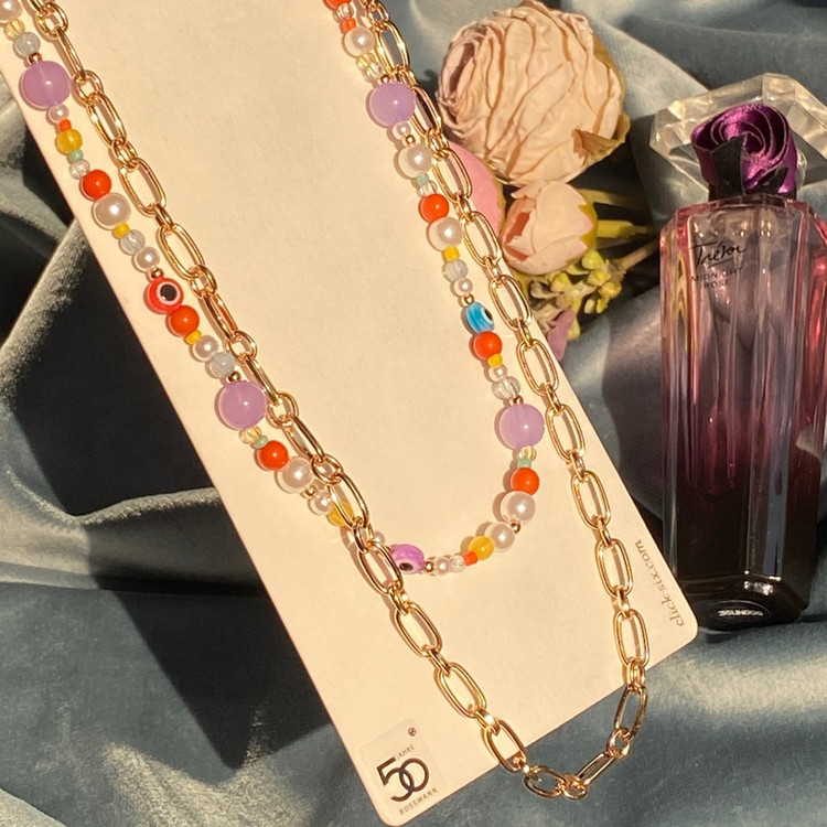 خرید گردنبند دخترانه پک دوتایی طلایی با مهره و زنجیر خاص مدل جدید وارداتی با پک هدیه