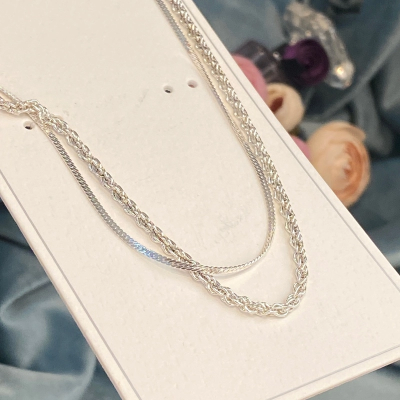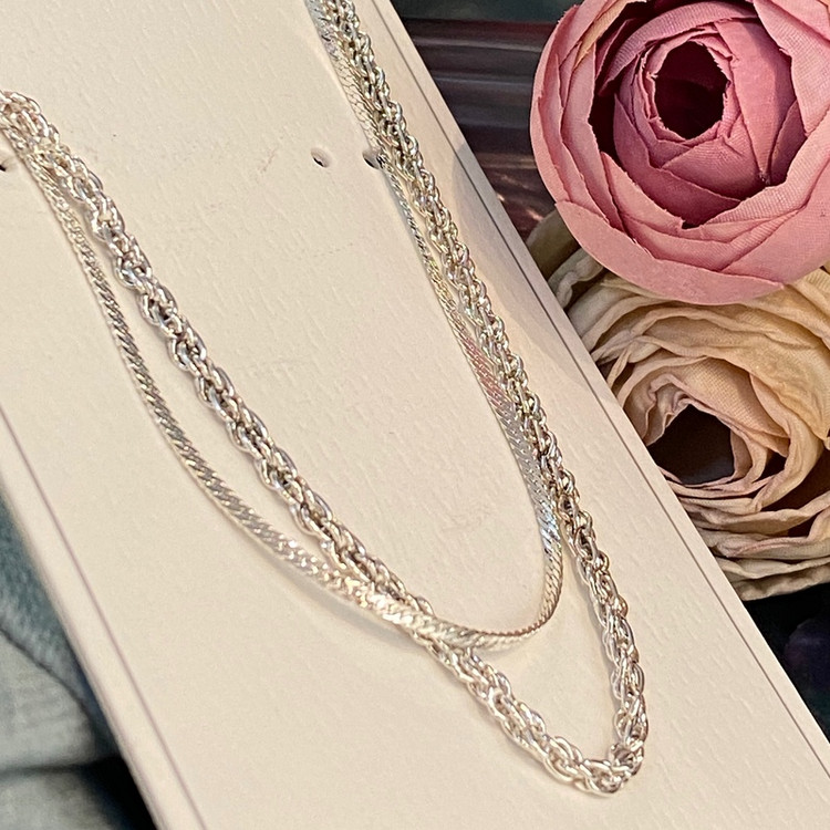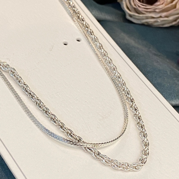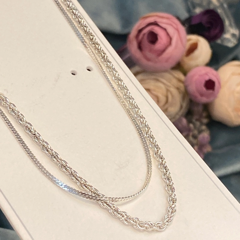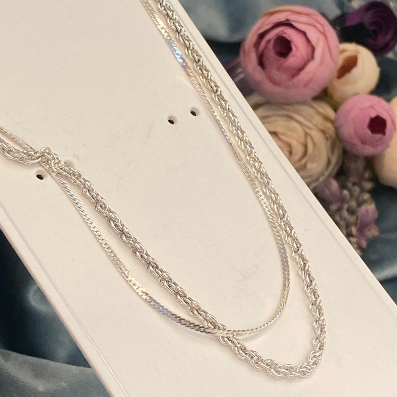 گردنبند نقره ای زنانه پک دوتایی مدل ماری و زنجیر تکه برند تاش آلمان