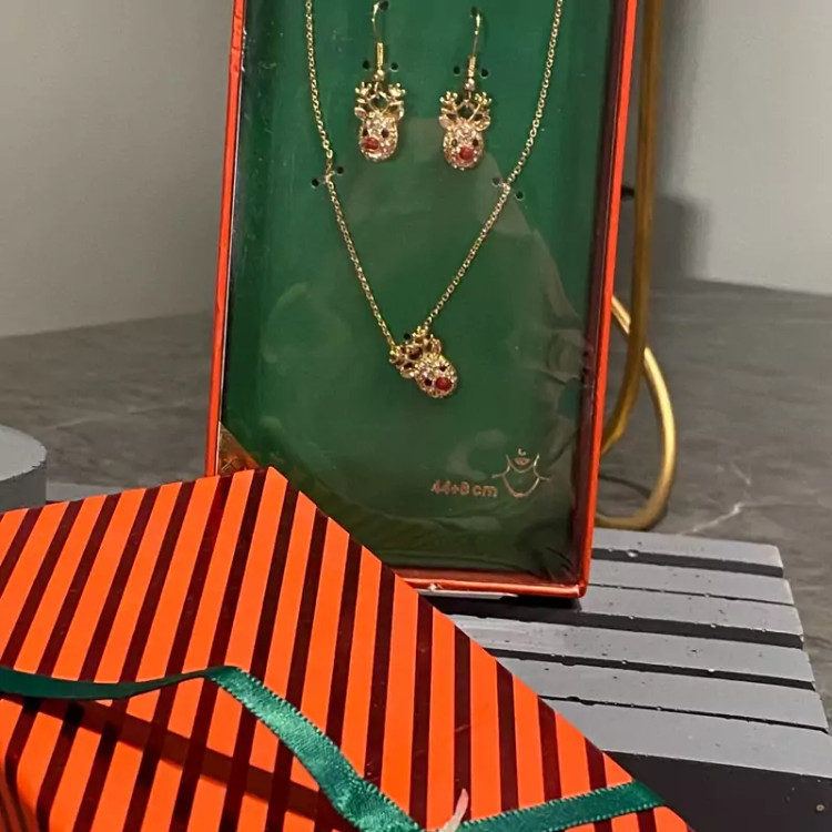 پک کادویی نیم ست تمام نگین گلد پلیت رنگ ثابت وارداتی کادو تولد