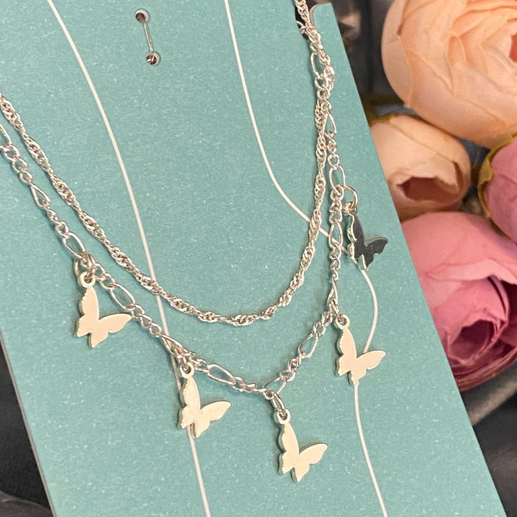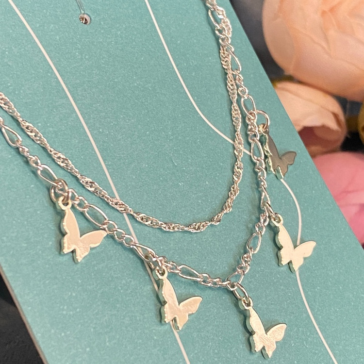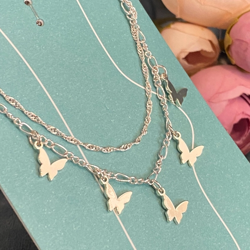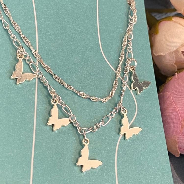 پابند پک دو عددی پابند دخترانه با زنجیر ساده و آویز پروانه