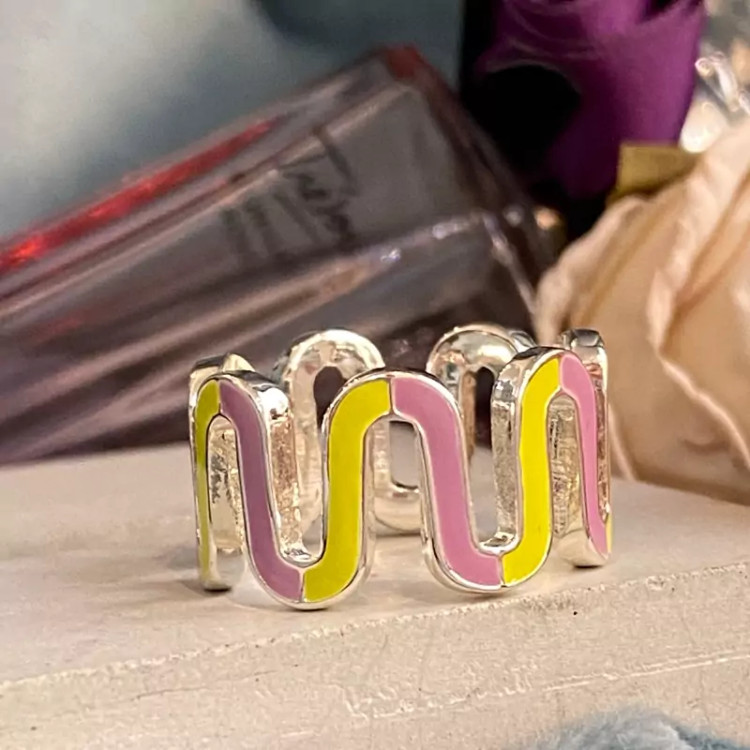 انگشتر پیچی زرد و صورتی اکسسوری دخترانه شیک