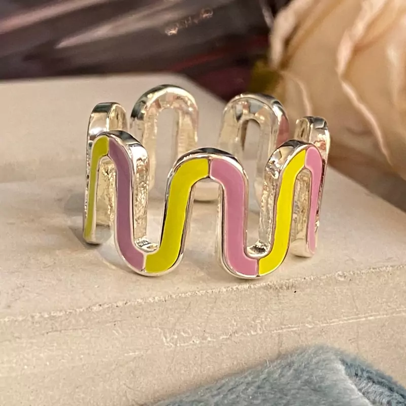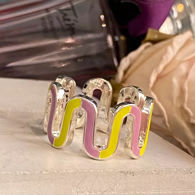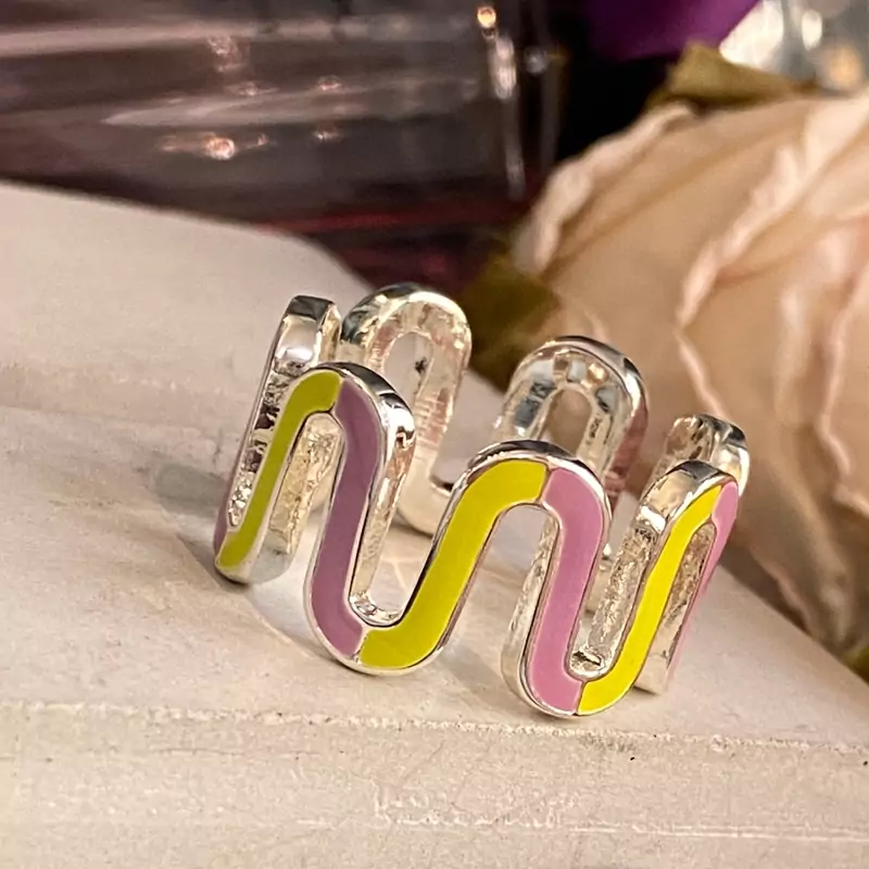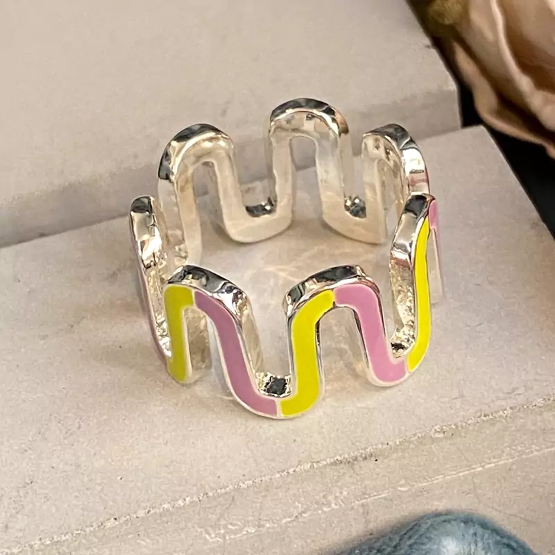 انگشتر پیچی زرد و صورتی اکسسوری دخترانه شیک