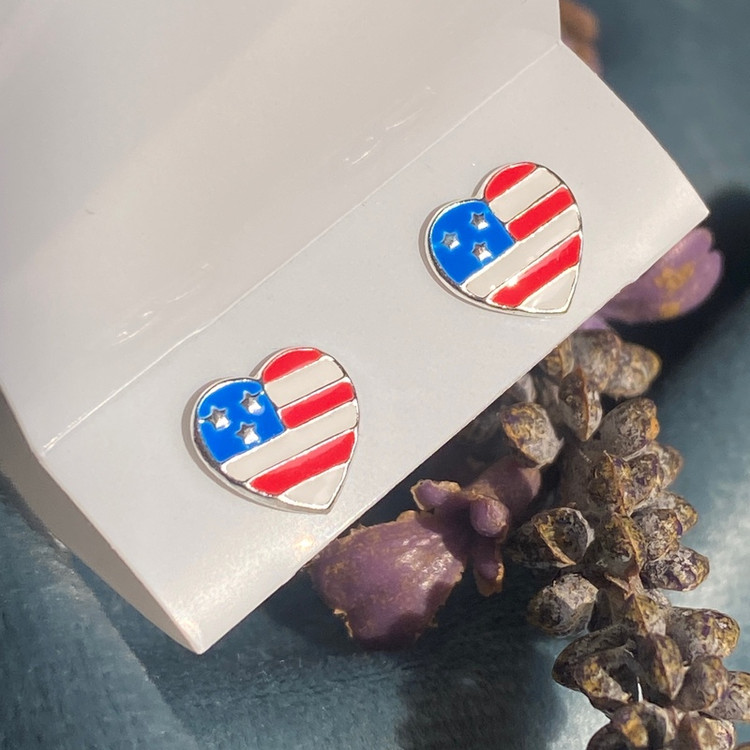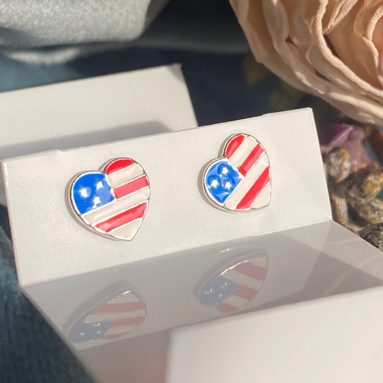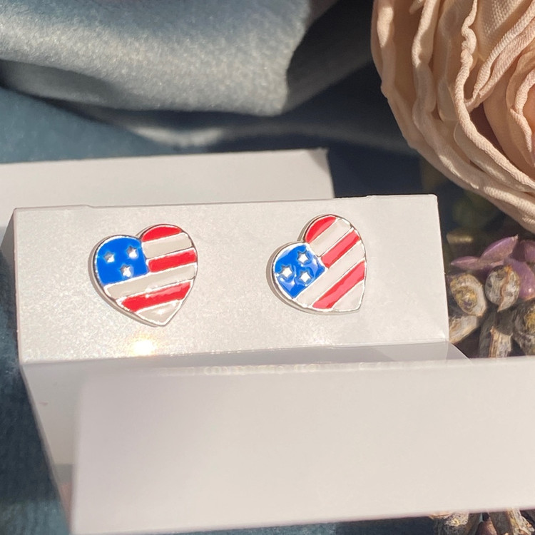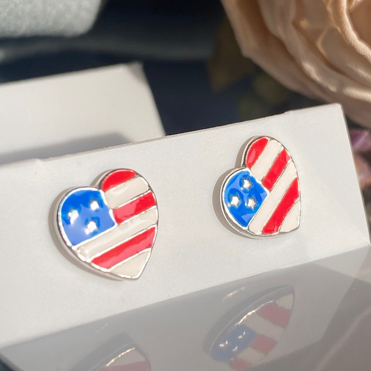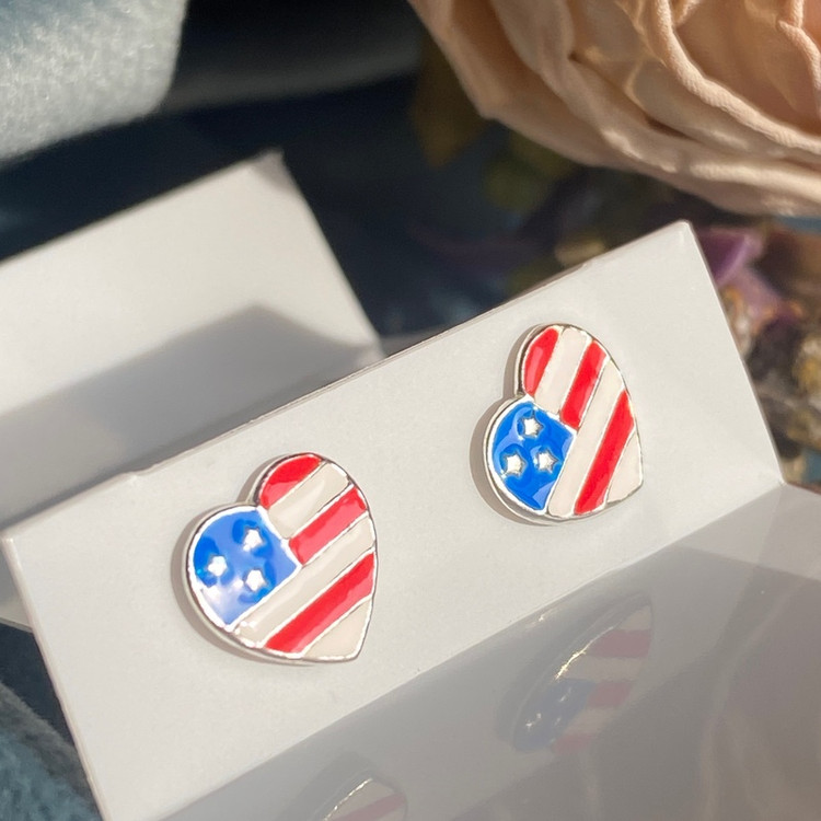 گوشواره نقره پرچم آمریکا گوشواره نقره با عیار 925 حک شده روی میخ گوشواره بینظیر برای کادو تولد و عیدی