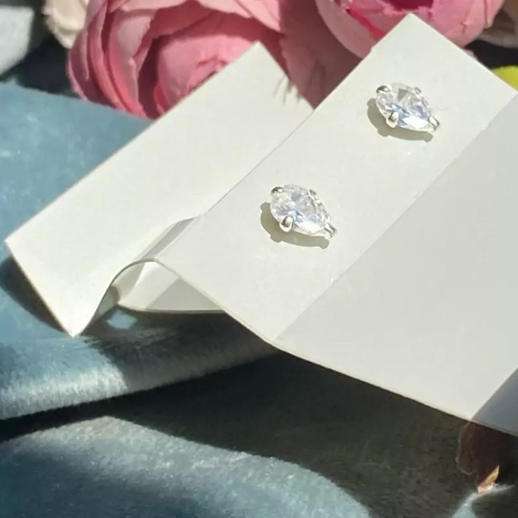 گوشواره نقره میخی اشک کریستالی مینیمال