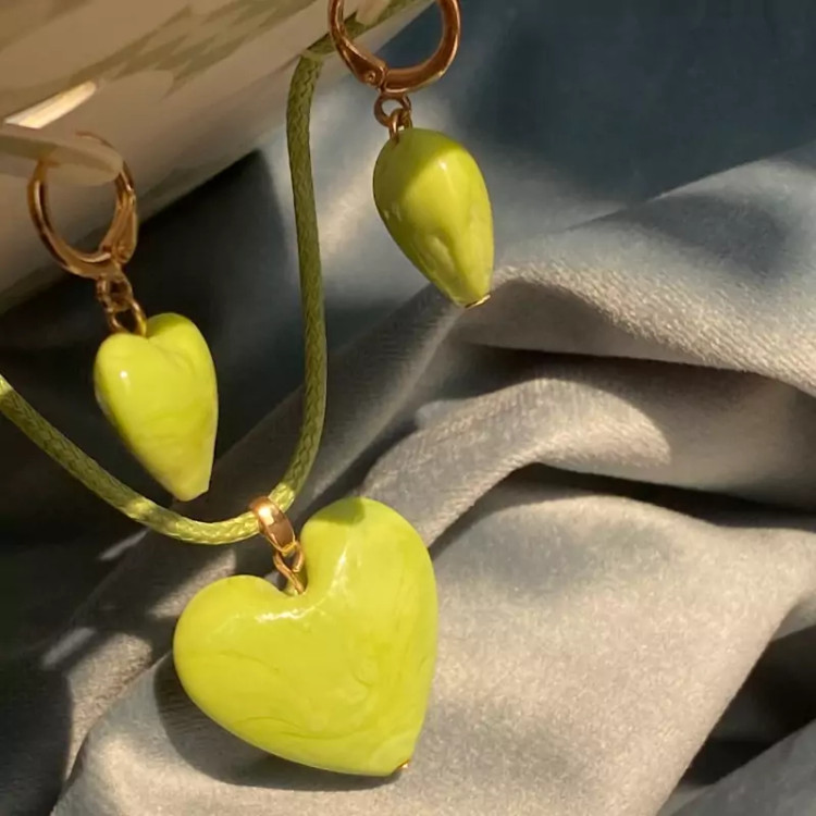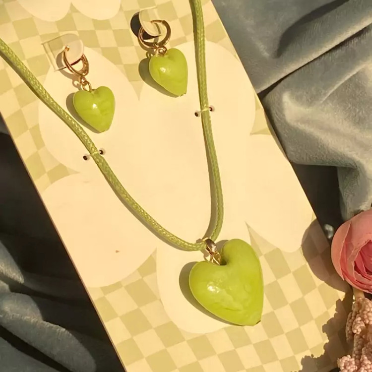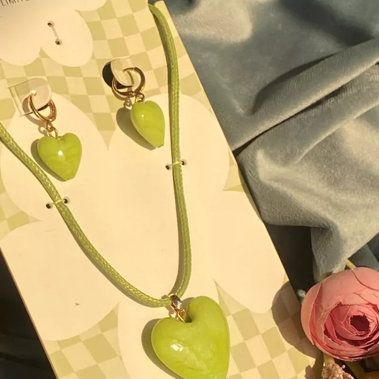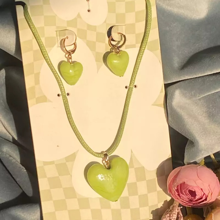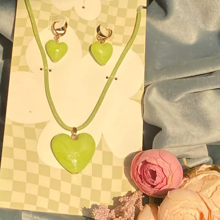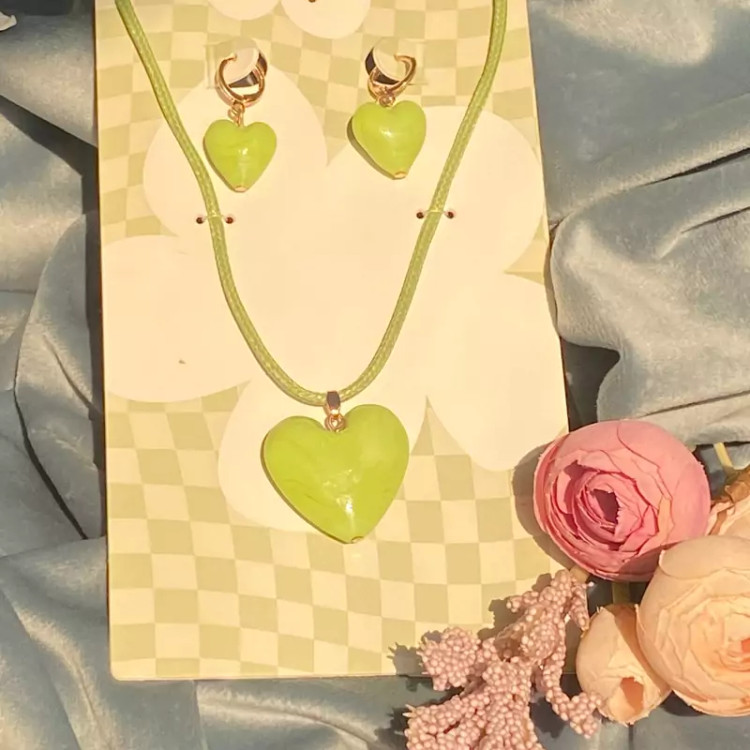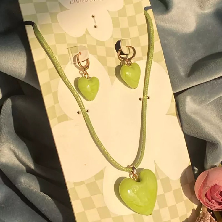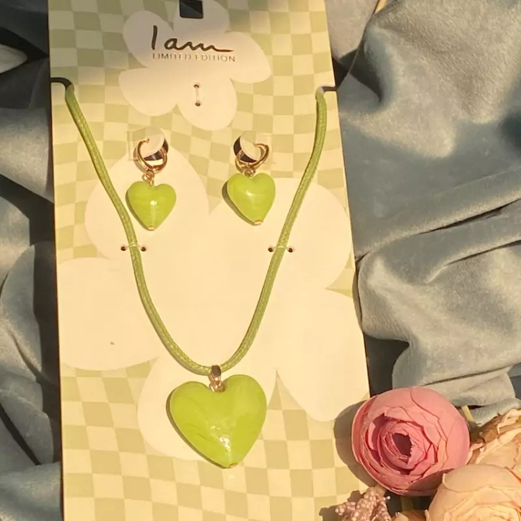 نیمست قلب سبز ست گردنبند و گوشواره اکسسوری زنانه و دخترانه شیک برای کادو تولد و هدیه ولنتاین