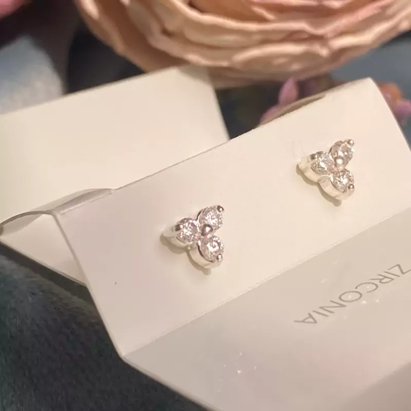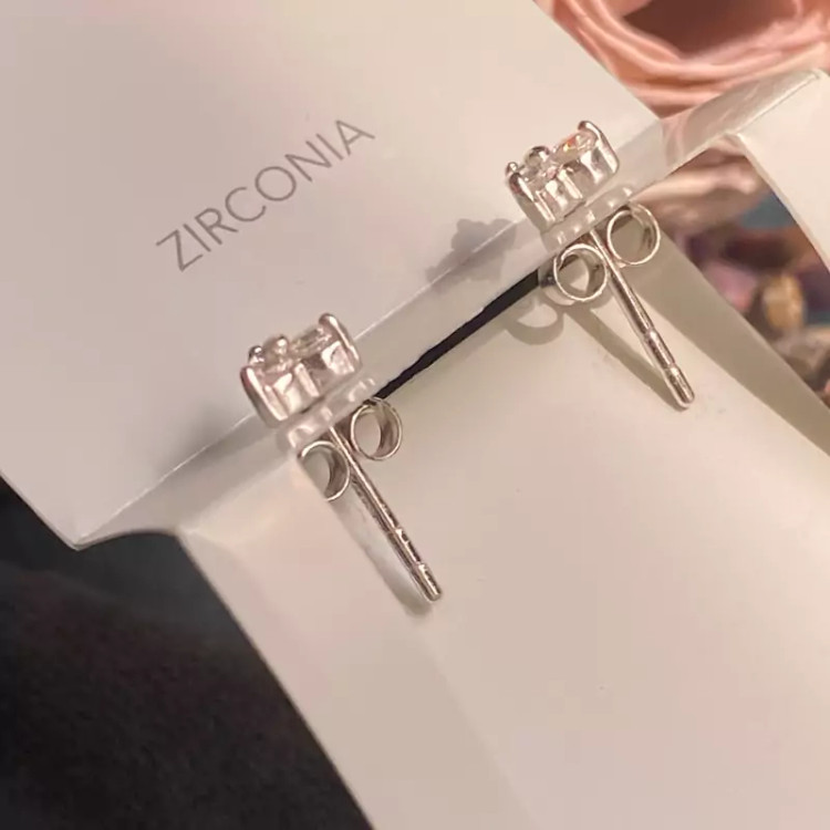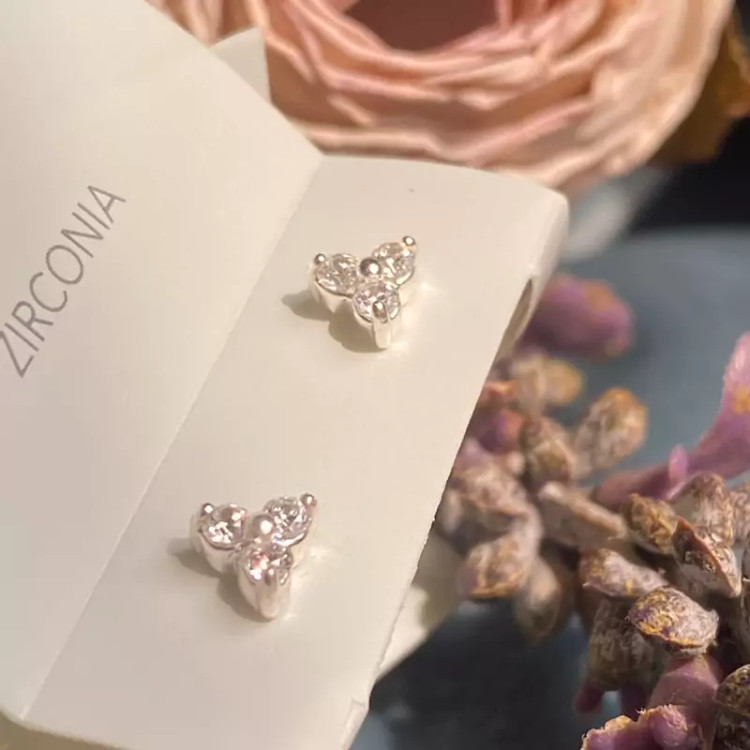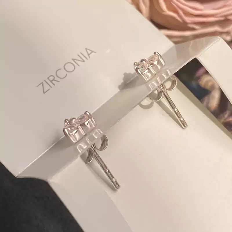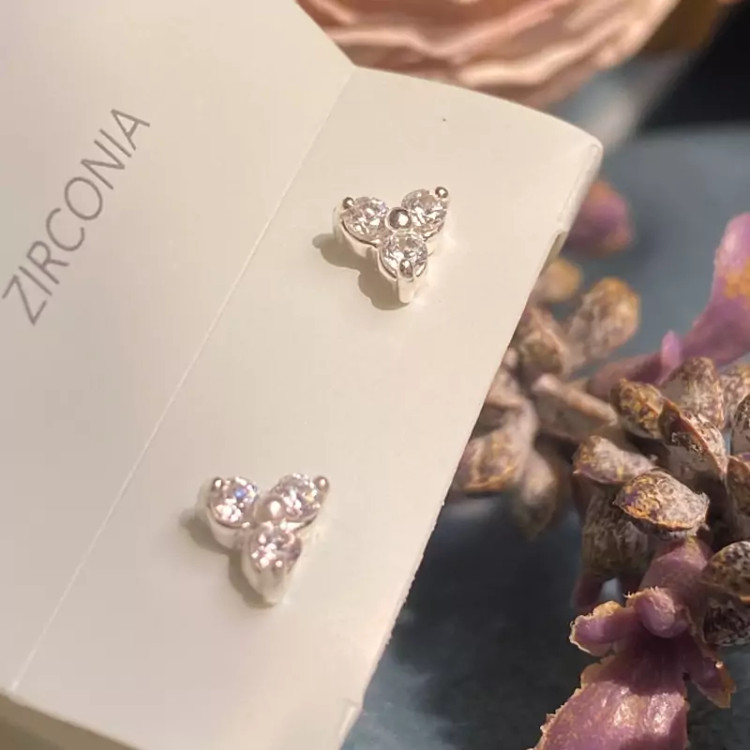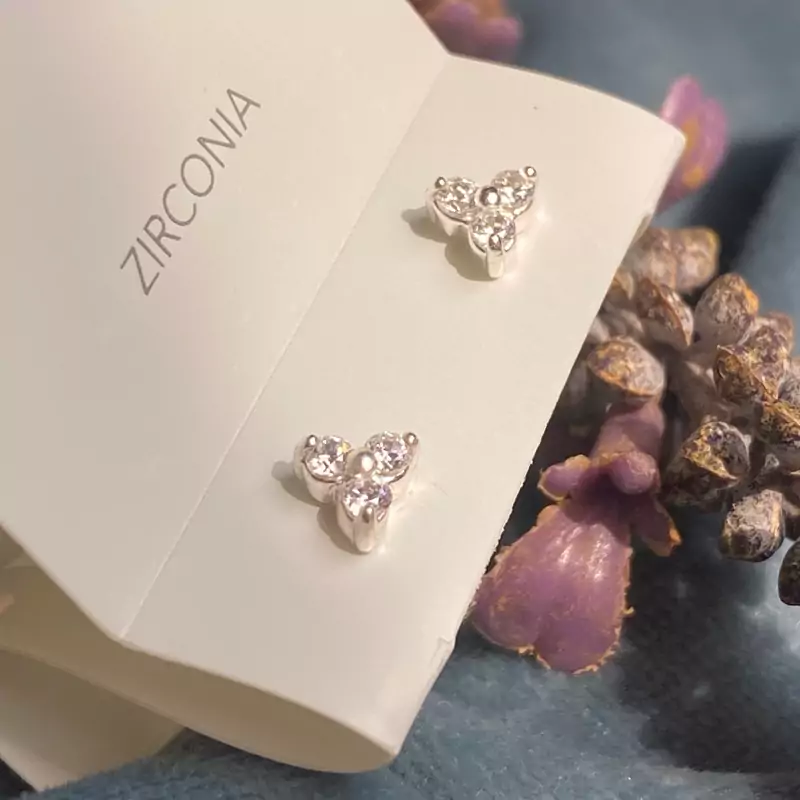 گوشواره نقره میخی نگین دار مثلثی دخترانه عیار 925 برند I am