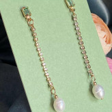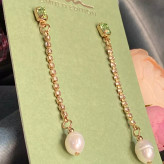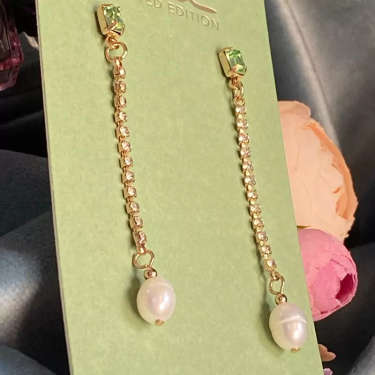 گوشواره میخی مرواریدی با کریستال سبز گوشواره مجلسی
