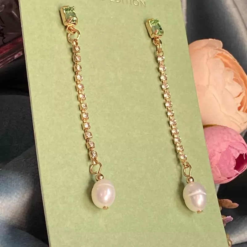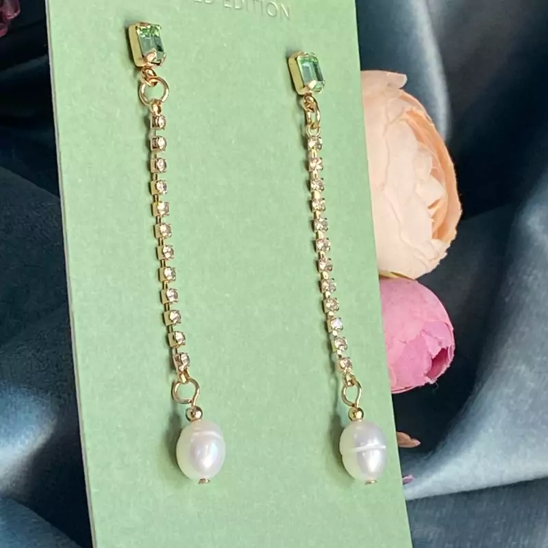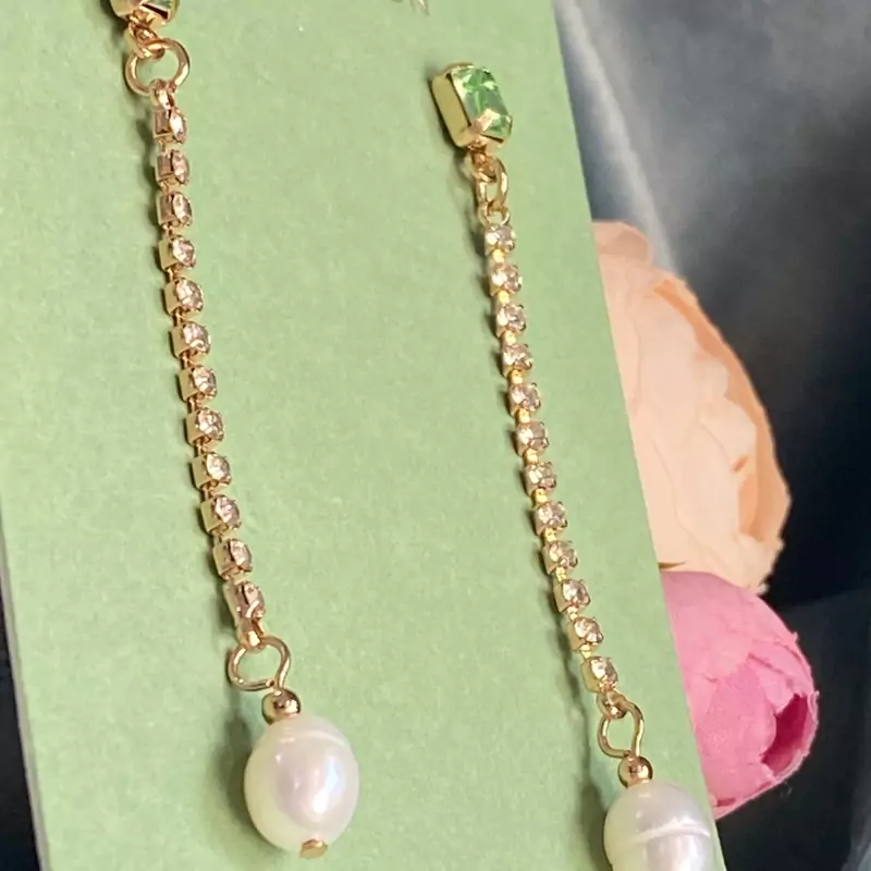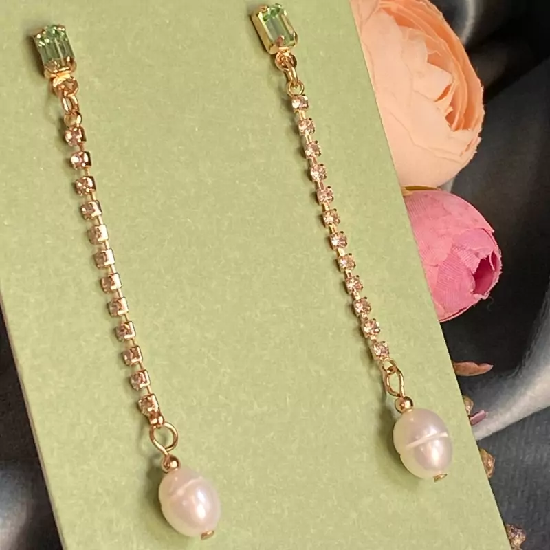 گوشواره میخی مرواریدی با کریستال سبز گوشواره مجلسی