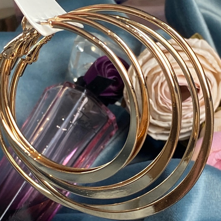 پک گوشواره حلقه ای سه تایی طلایی سه سایز متفاوت دخترانه شیک جدید