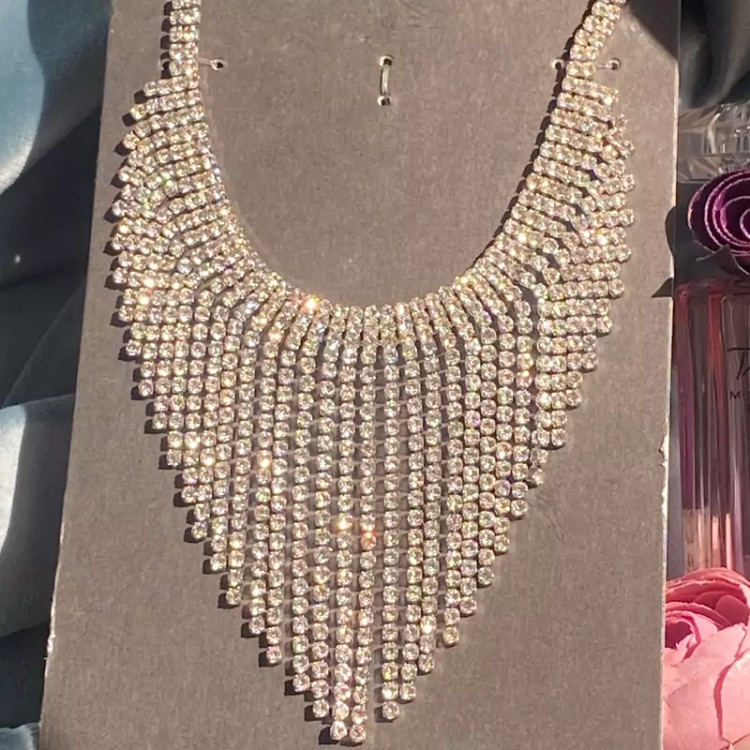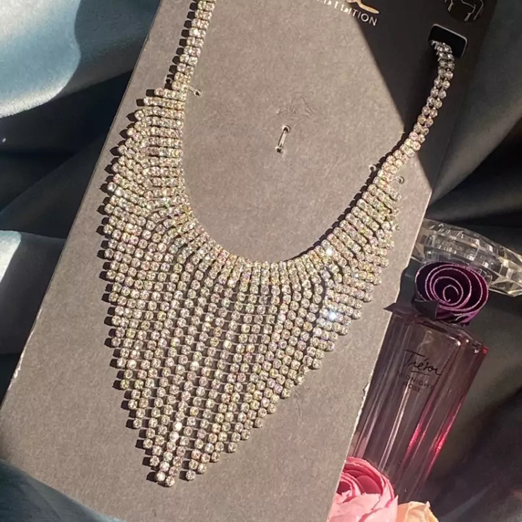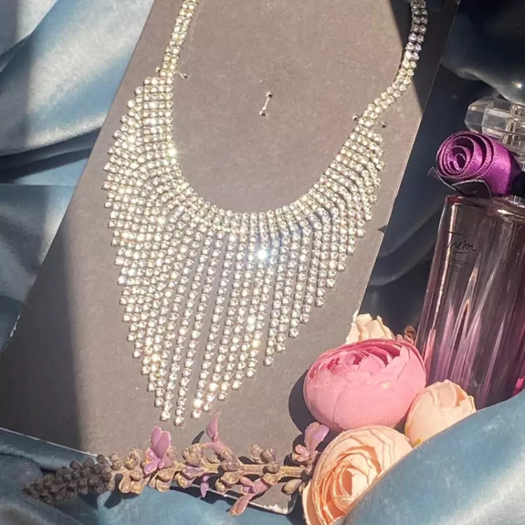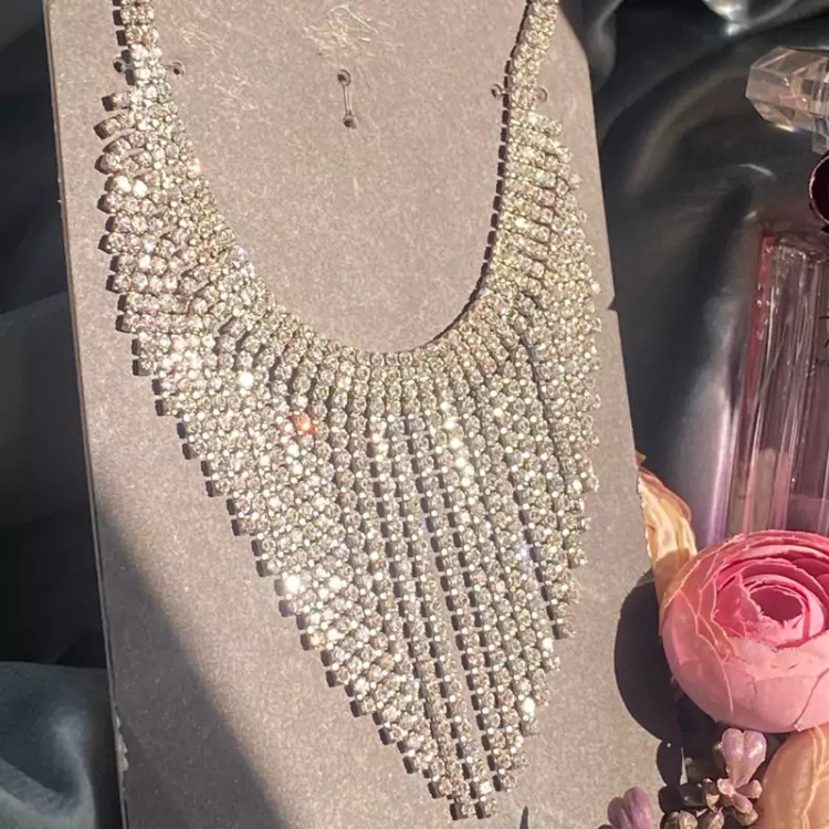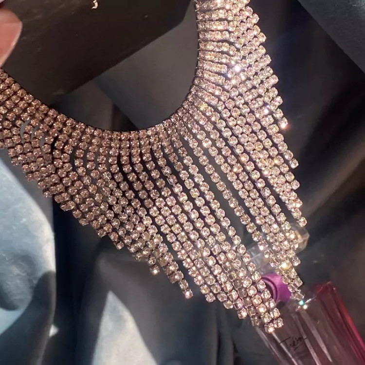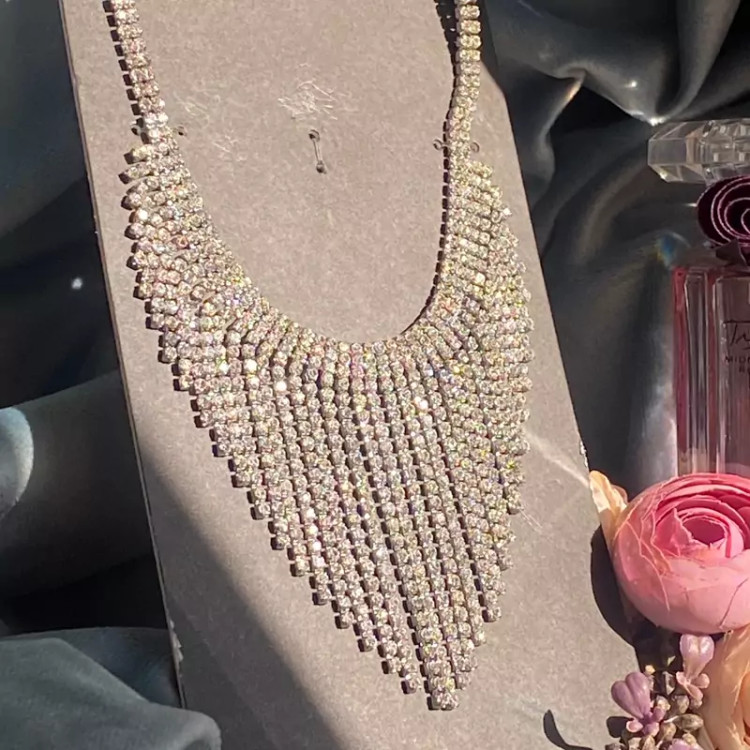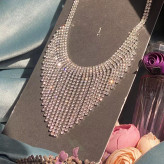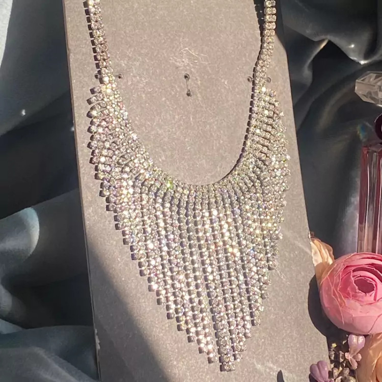 سینه ریز گردنبند تمام نگین فوق العاده زیبا در گردن ضد حساسیت بدون برخورد اب و الکل گردنبند زیبا و درخشان اکسسوری دخترانه شیک مناسب کادو تولد