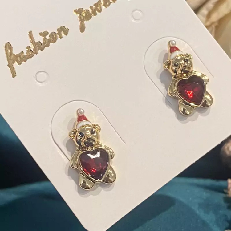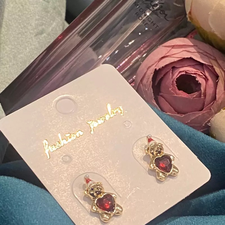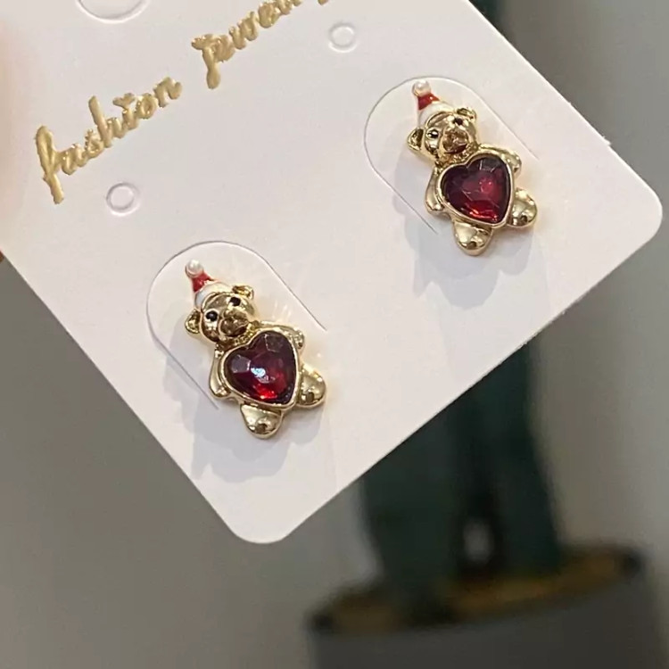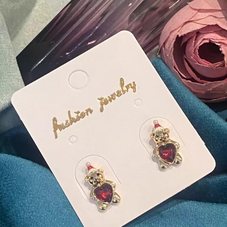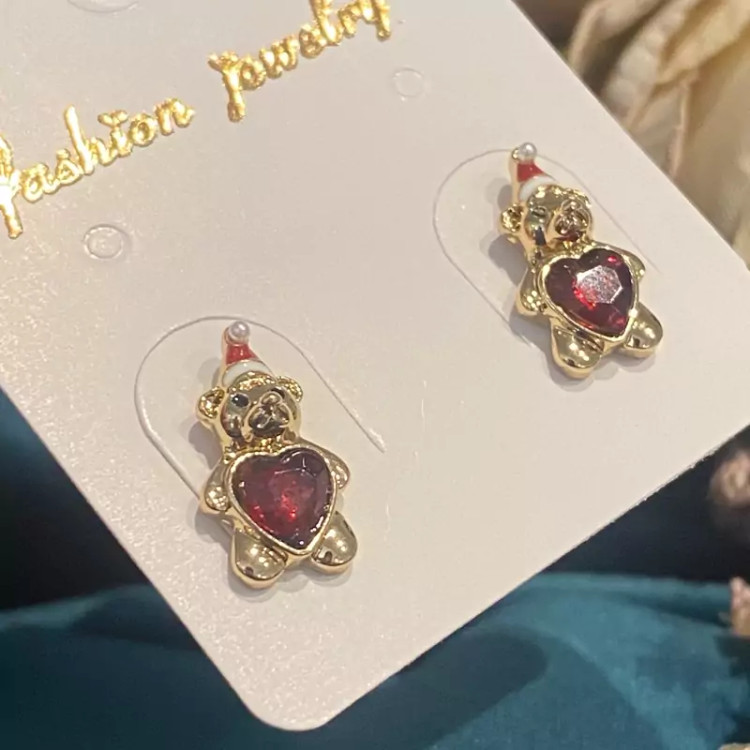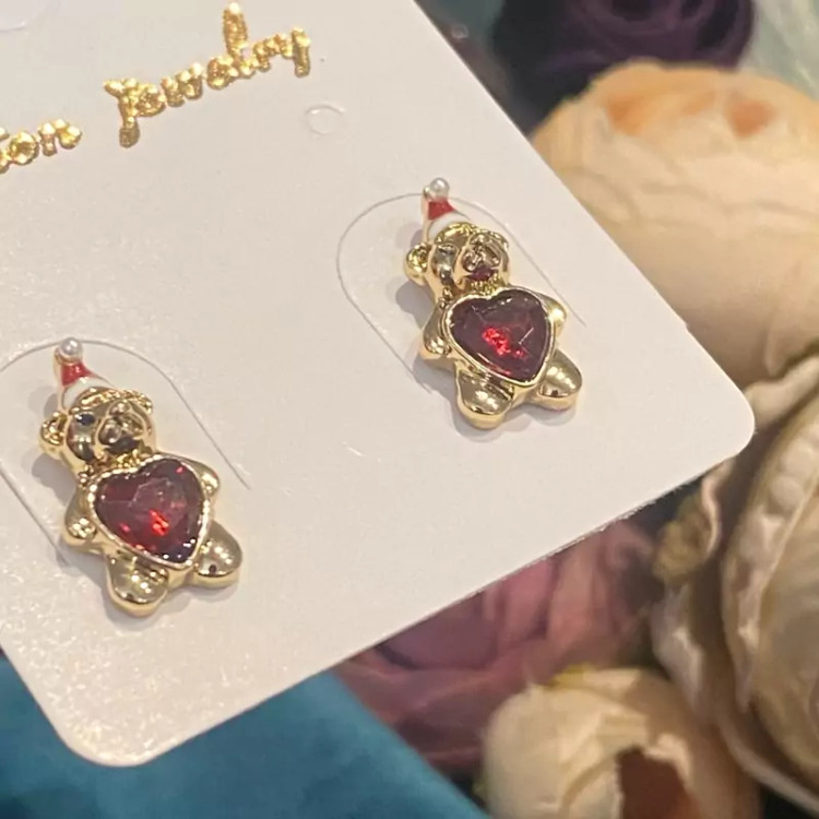 گوشواره میخی خرس با قلب قرمز اکسسوری زنانه و دخترانه شیک برای کادو تولد و هدیه