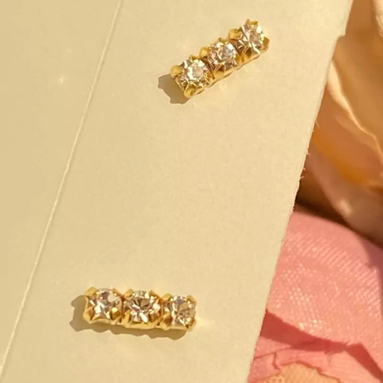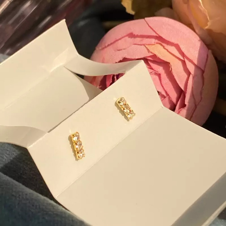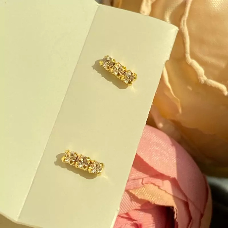 گوشواره نقره میخی خطی نگین دار آبکاری طلا