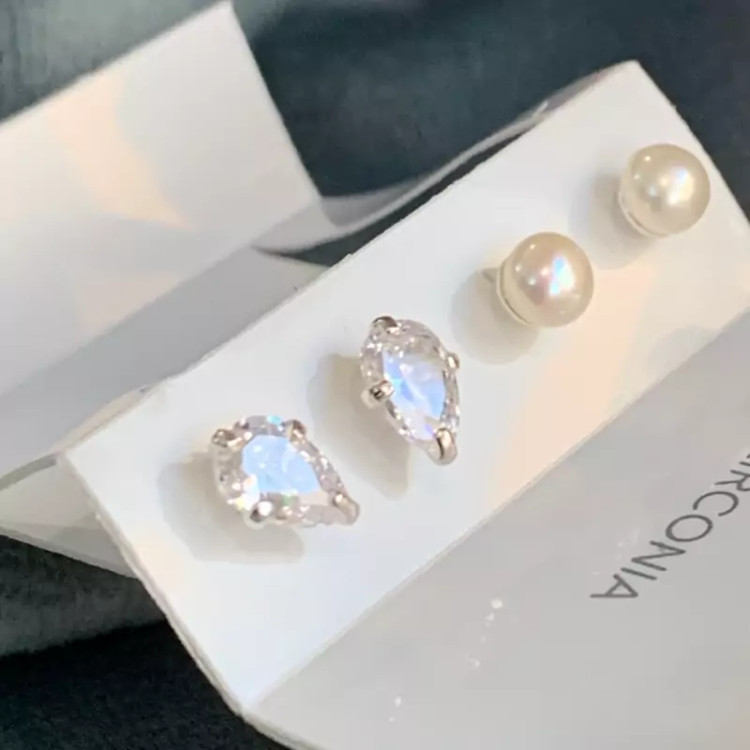 پک گوشواره دوتایی نقره اصل مرواریدی و مدل اشک