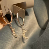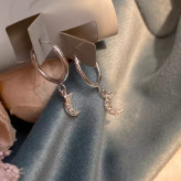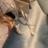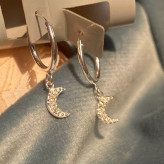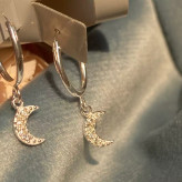 گوشواره نقره مدل ماه نگین دار نقره اصل عیار 925 دخترانه زنانه شیک و درخشان ضد حساسیت