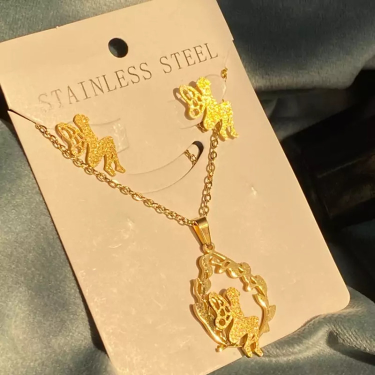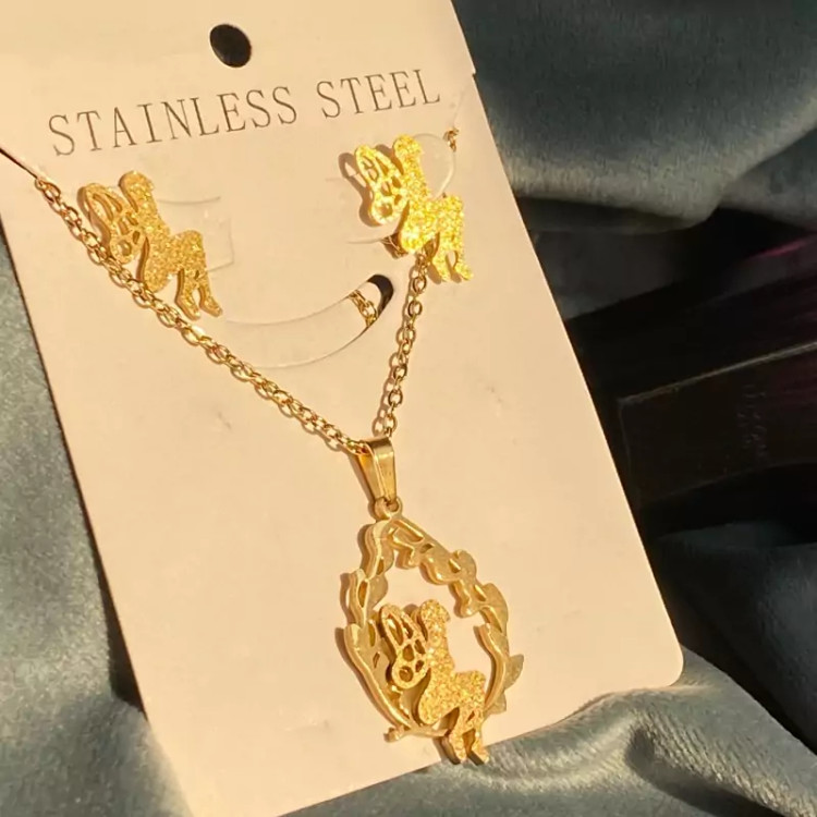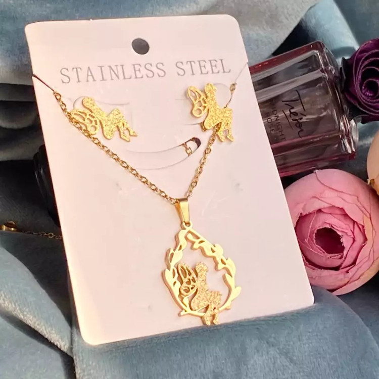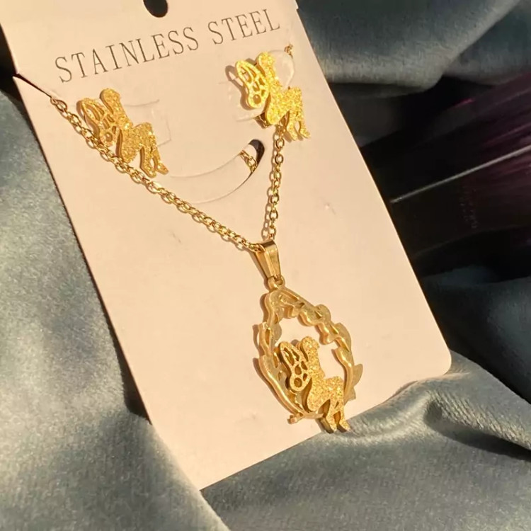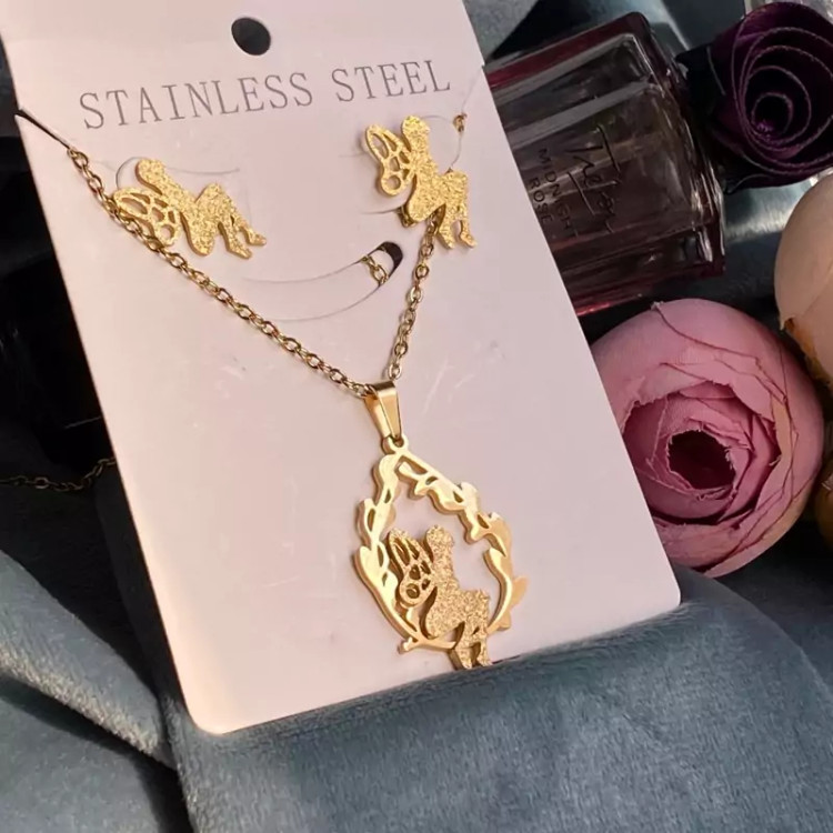 نیمست استیل رنگ ثابت طرح فرشته ست گوشواره و گردنبند استیل رنگ ثابت