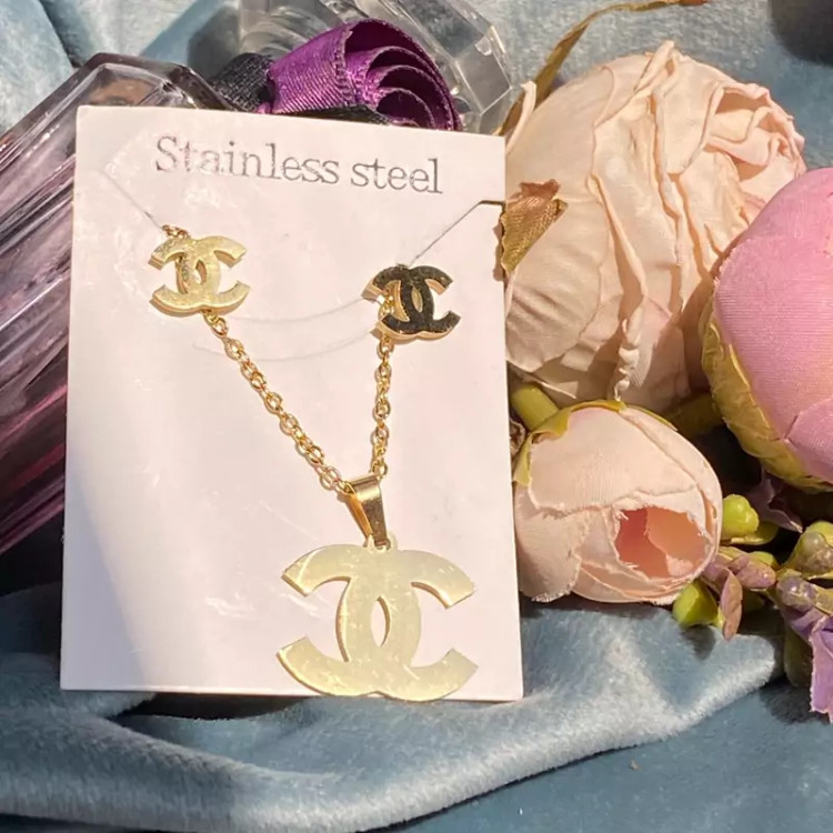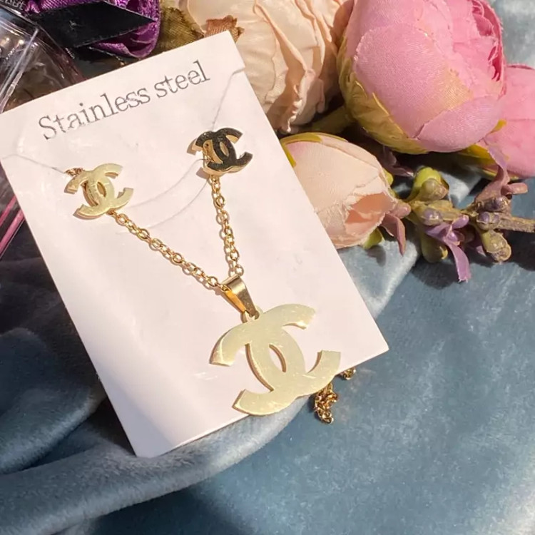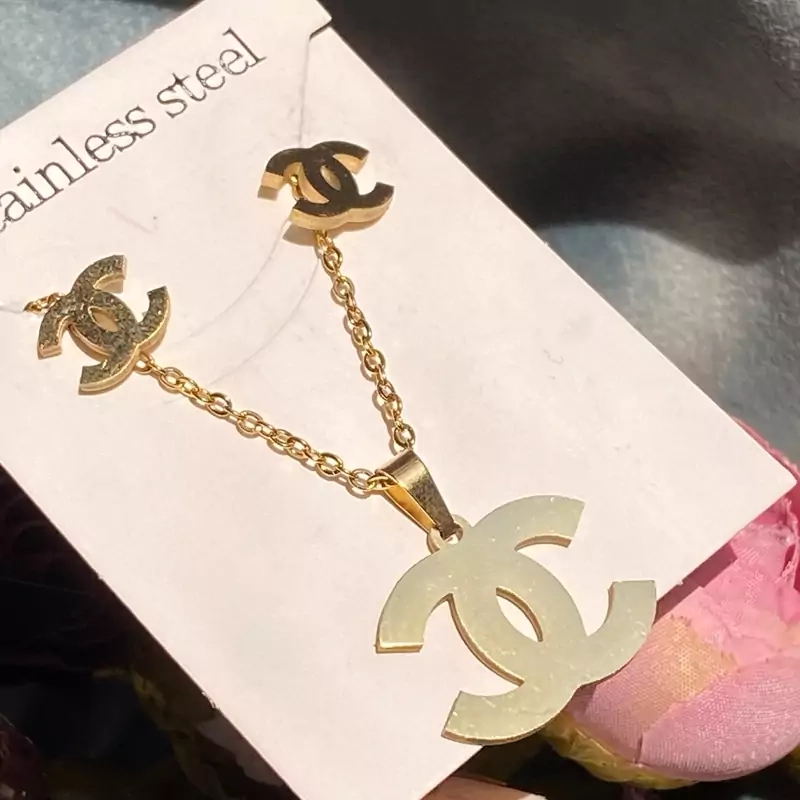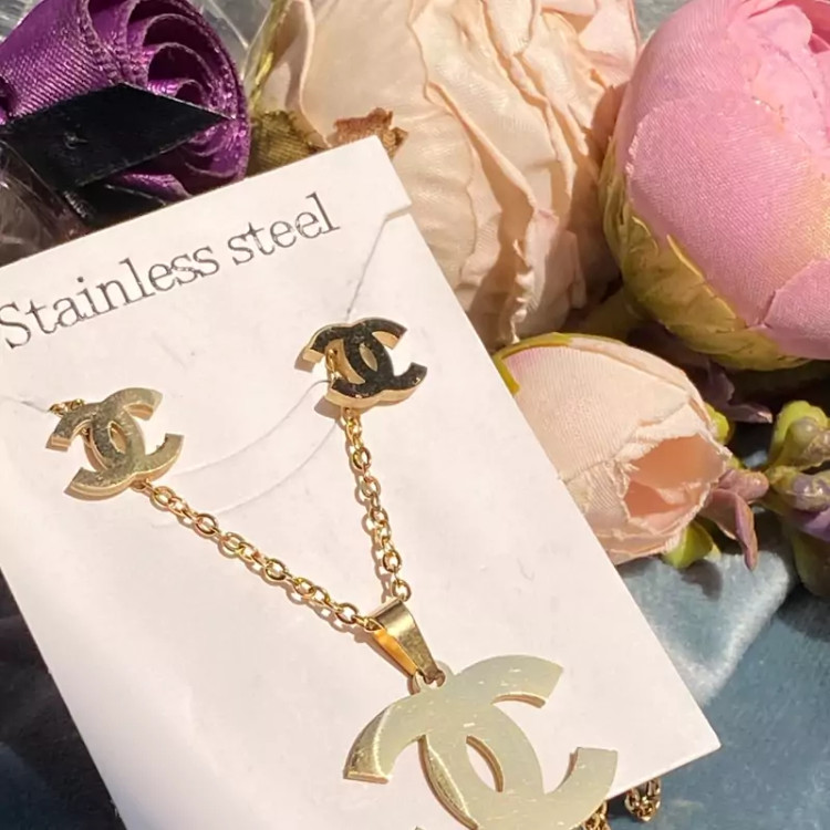 ست گوشواره و گردنبند استیل طلایی